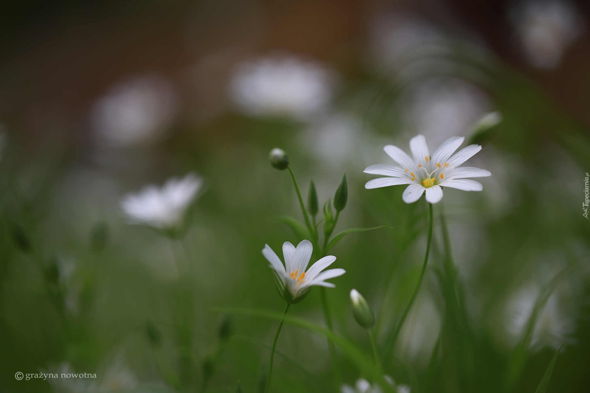 Edytor tapety: Biała gwiazdnica wielkokwiatowa na rozmytym tle