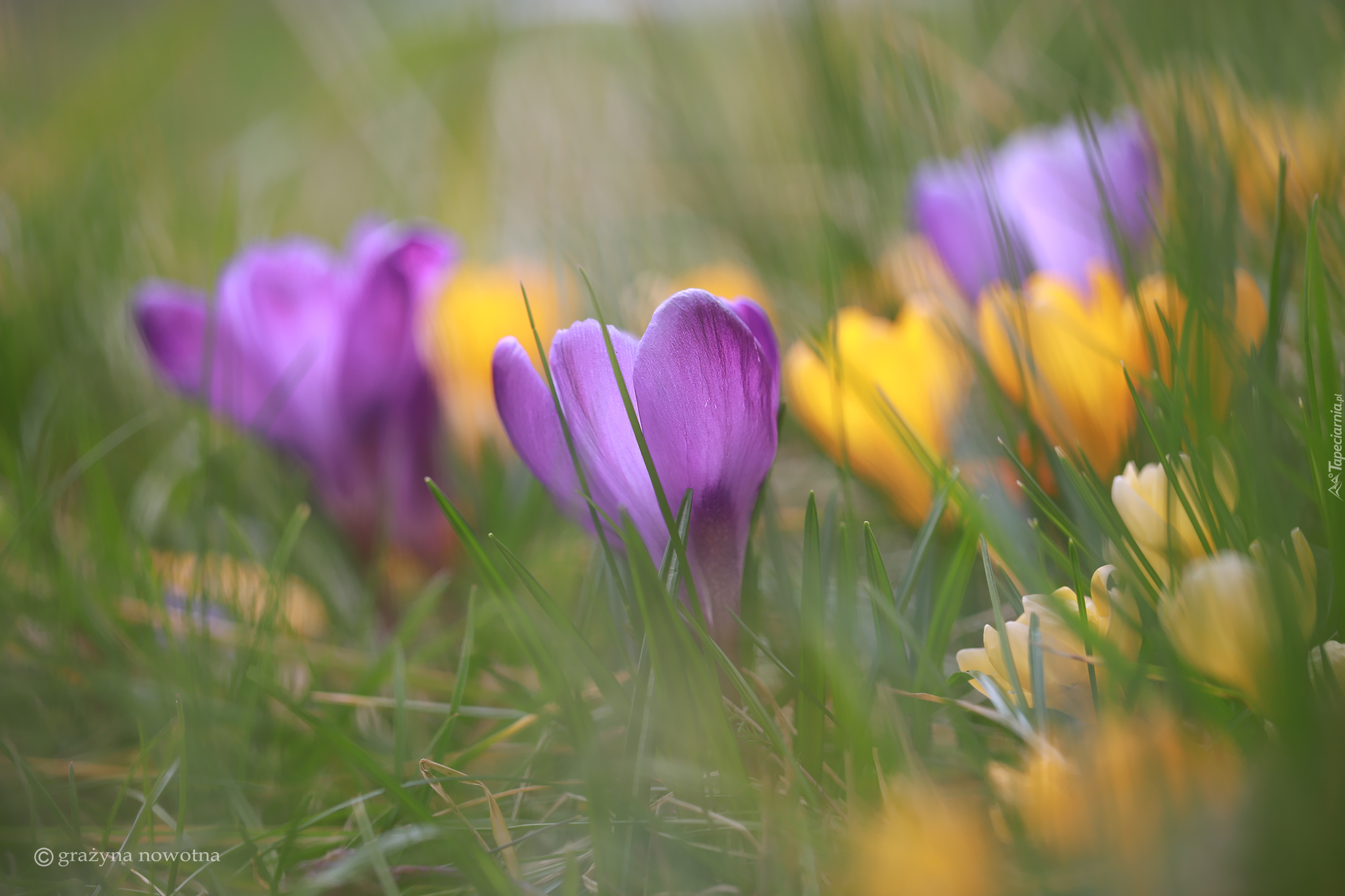 Edytor tapety: Fioletowy krokus na tle rozmytych krokusów