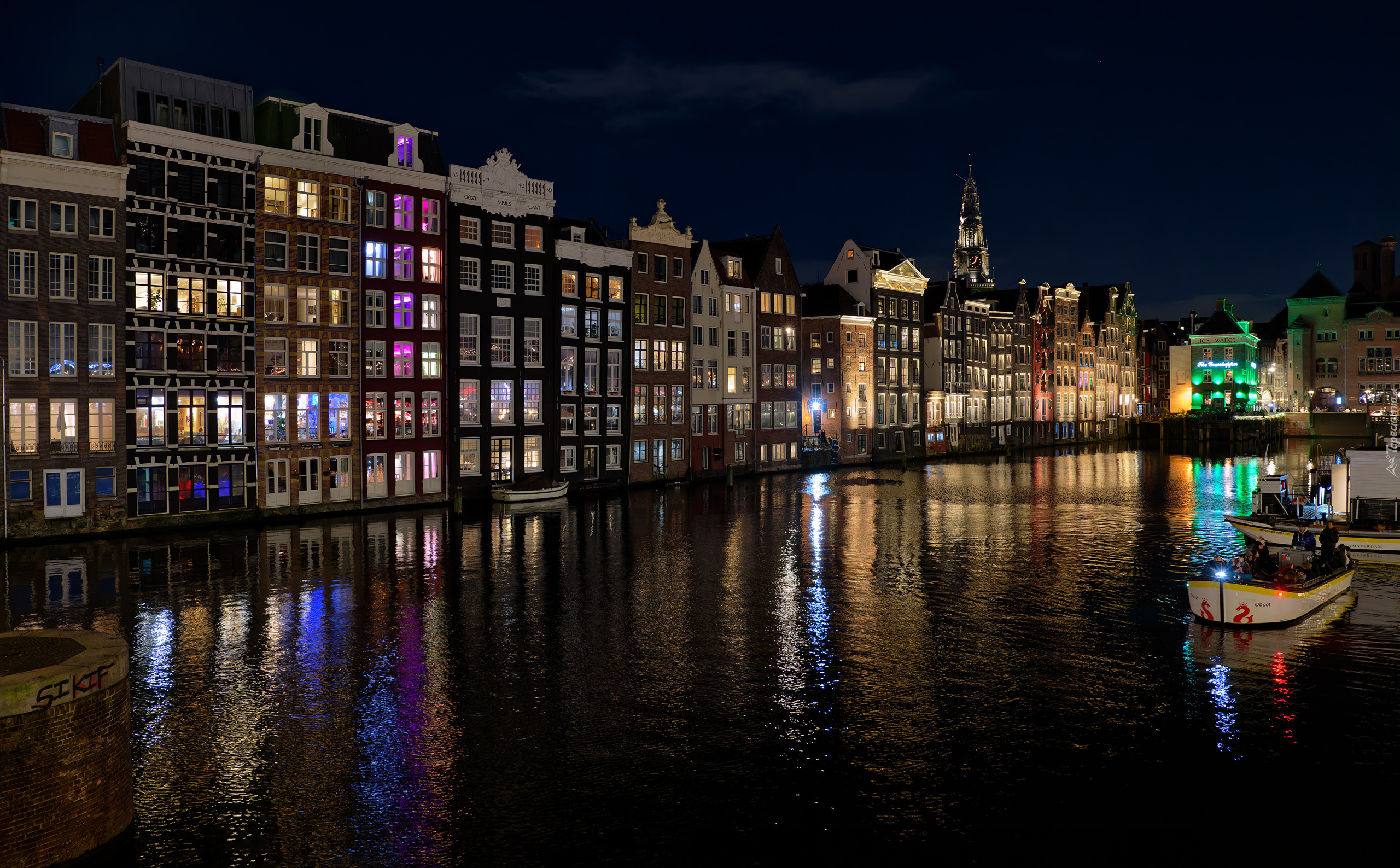 Edytor tapety: Budynki nad kanałem wodnym w Amsterdamie