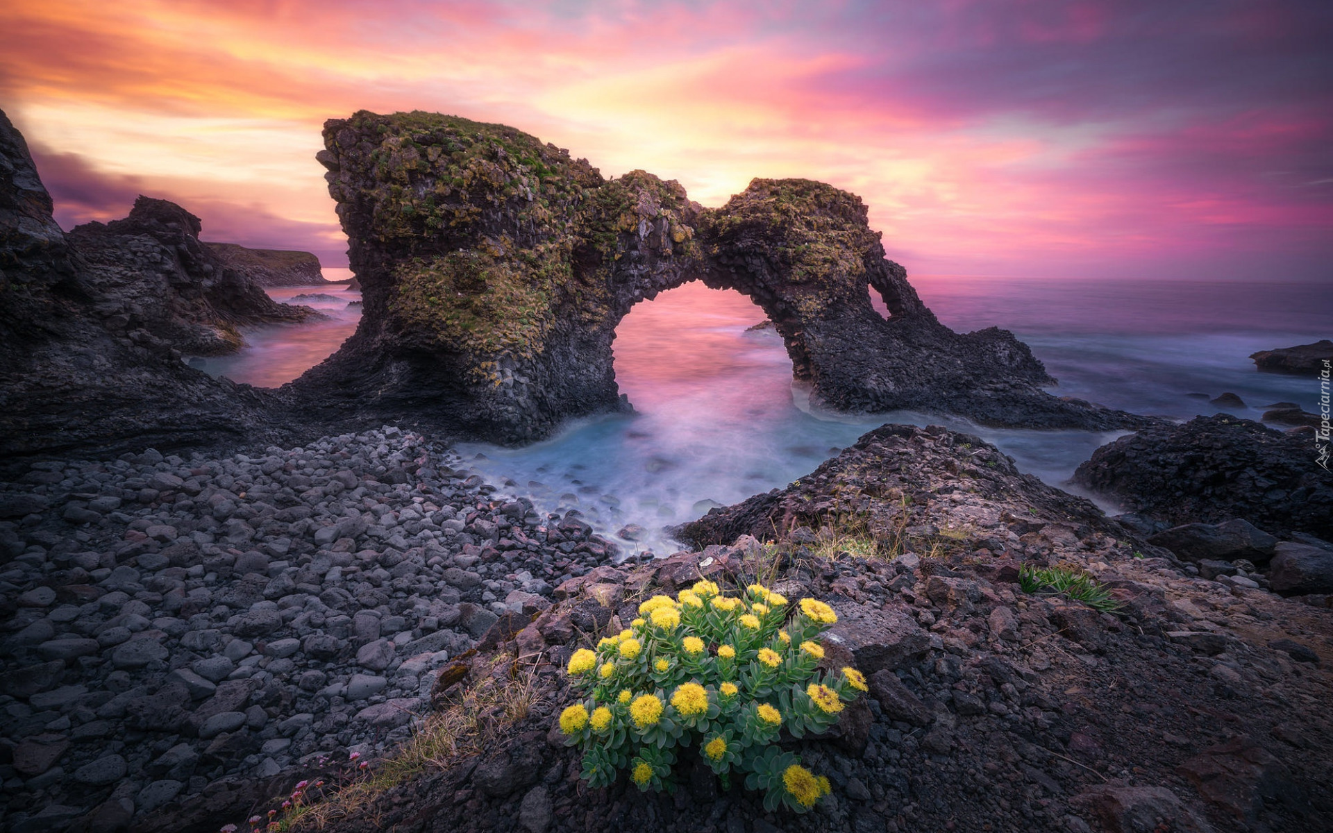 Edytor tapety: Łuk skalny Gatklettur na wybrzeżu Islandii