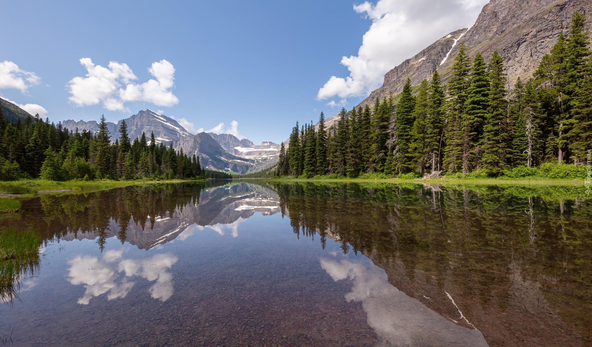 Edytor tapety: Widok na jezioro Swiftcurrent Lake i góry
