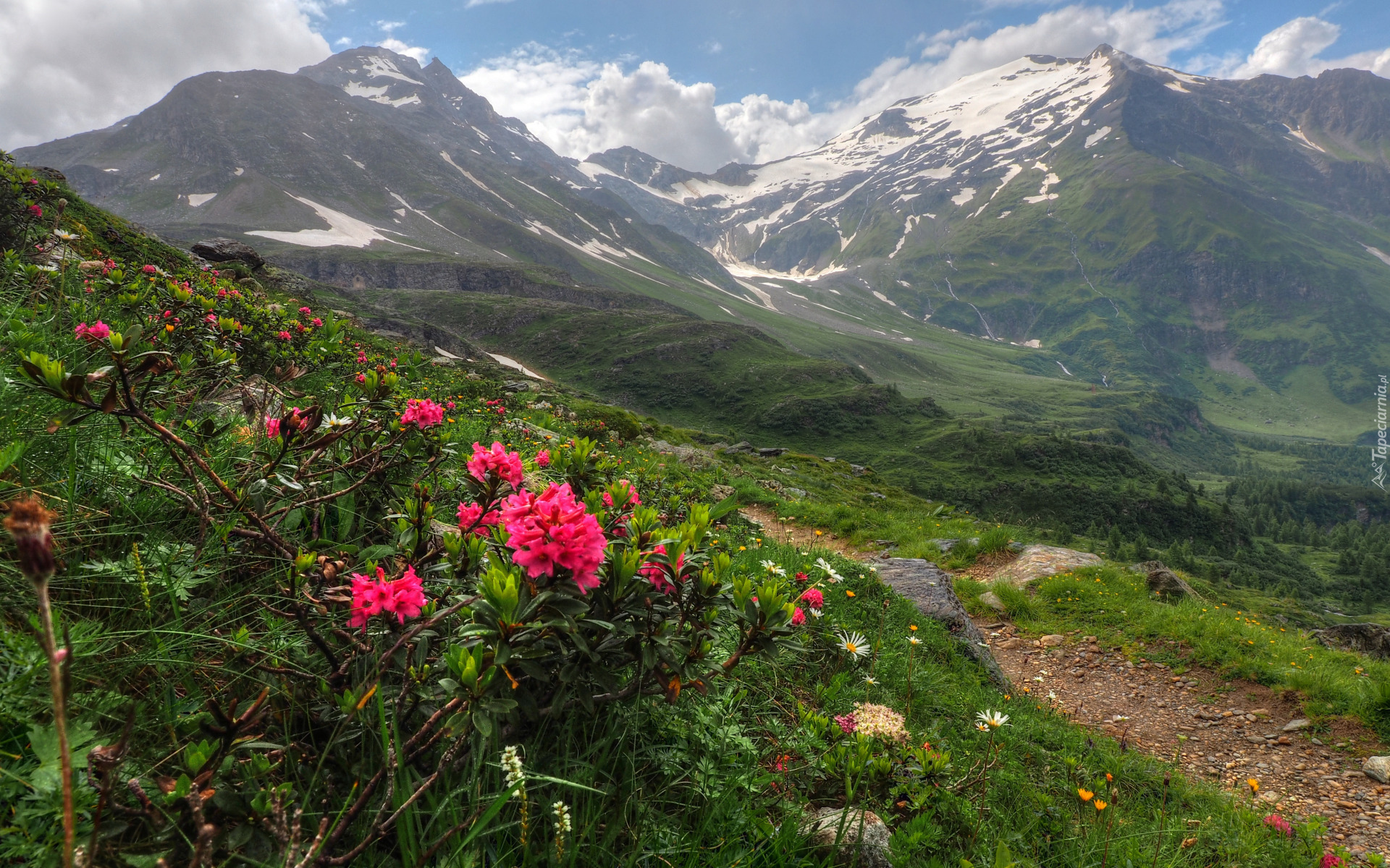 Edytor tapety: Rododendrony przy górskiej ścieżce