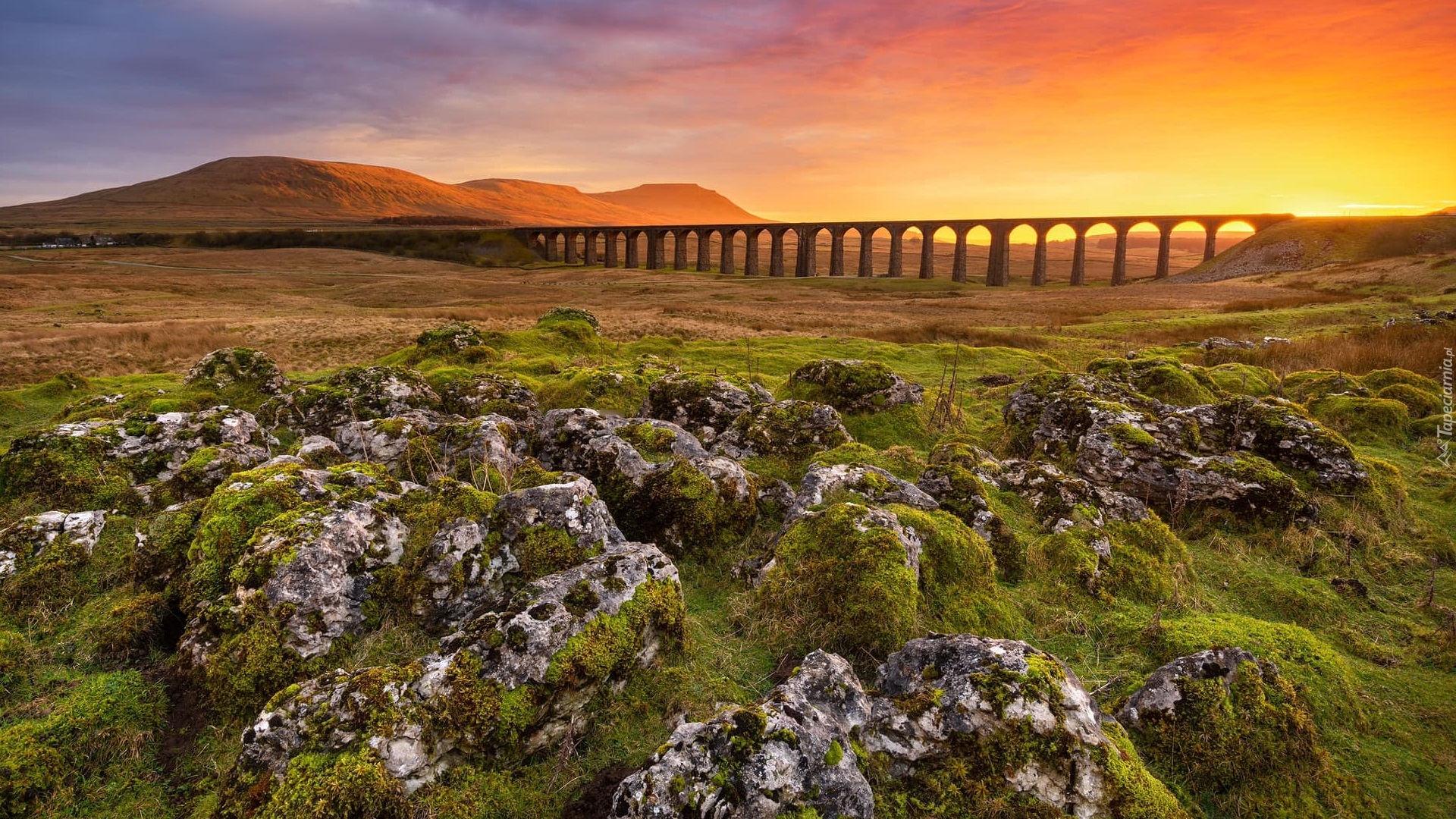 Edytor tapety: Ribblehead Viaduct o zachodzie słońca
