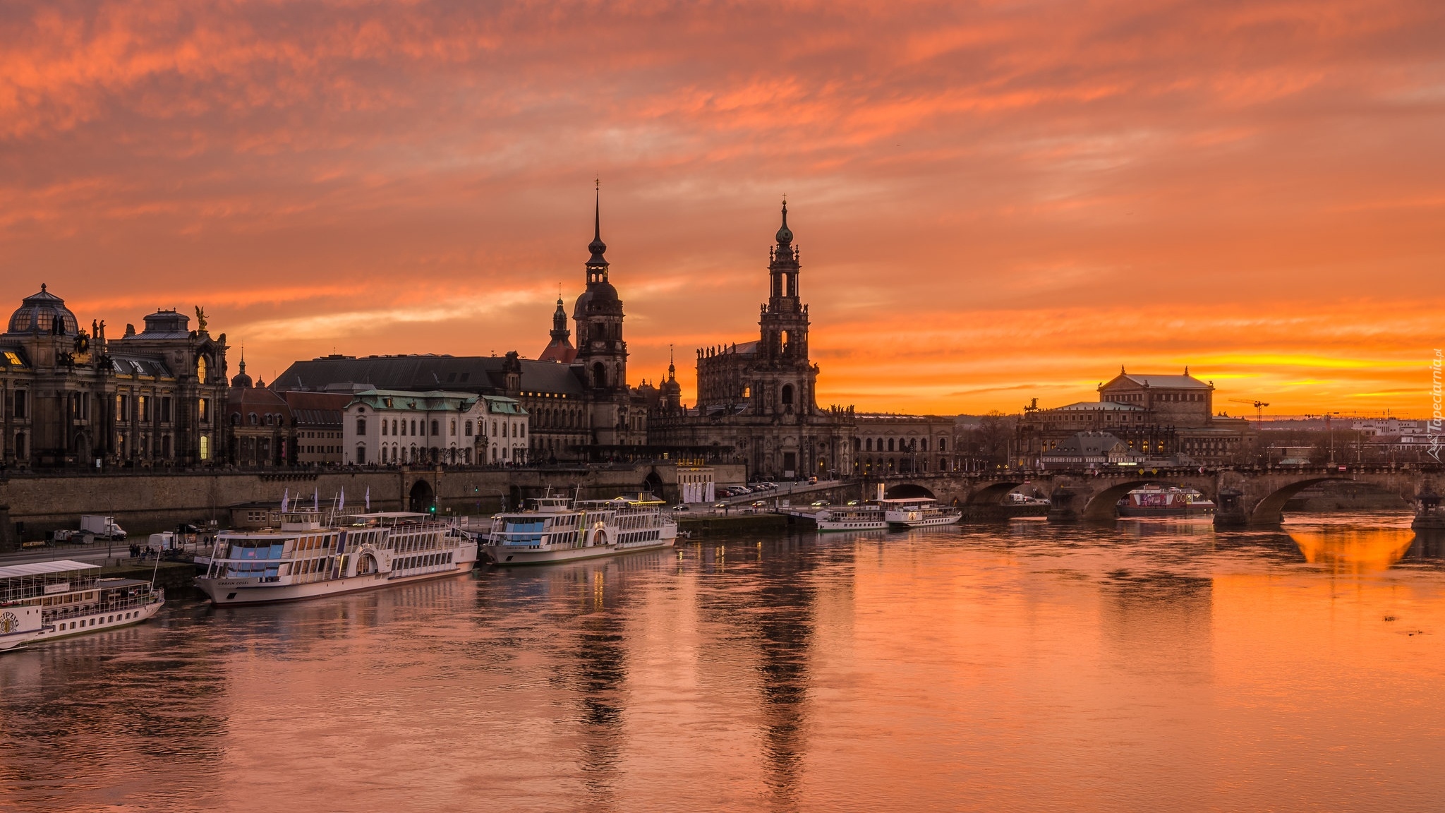 Edytor tapety: Drezno i rzeka Łaba o zachodzie słońca