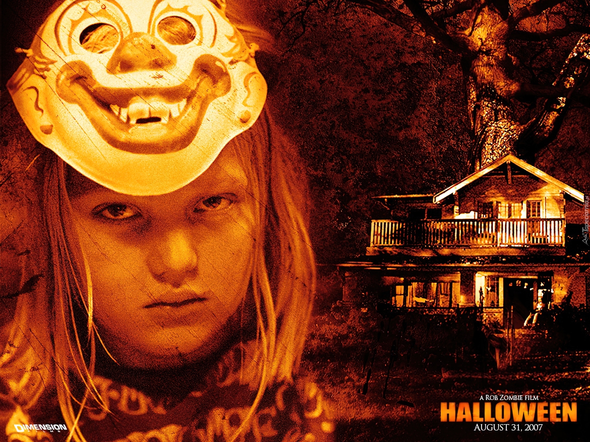 Edytor tapety: Halloween, dziewczynka, maska, dom