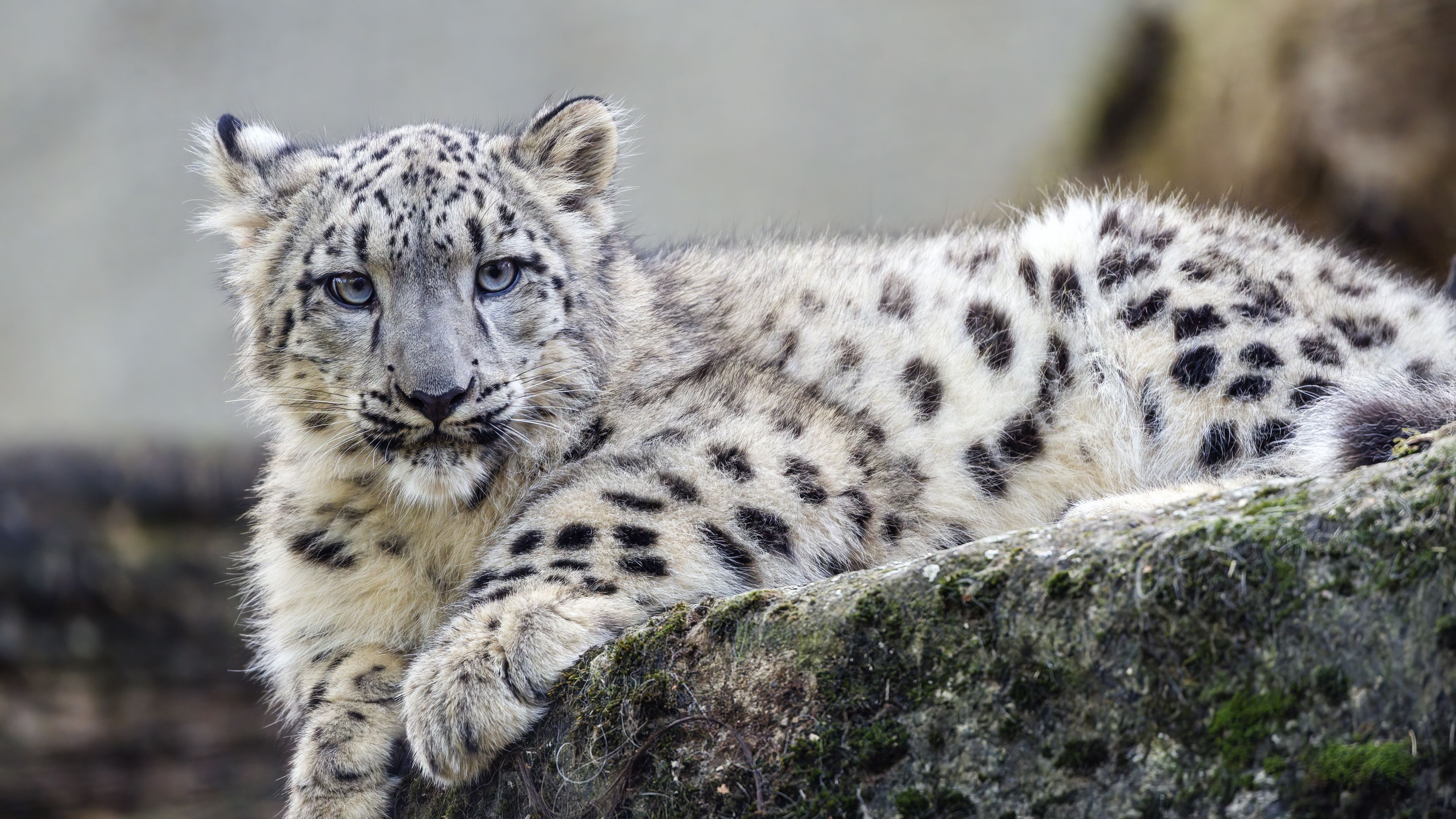 Edytor tapety: Młody irbis odpoczywający na skale