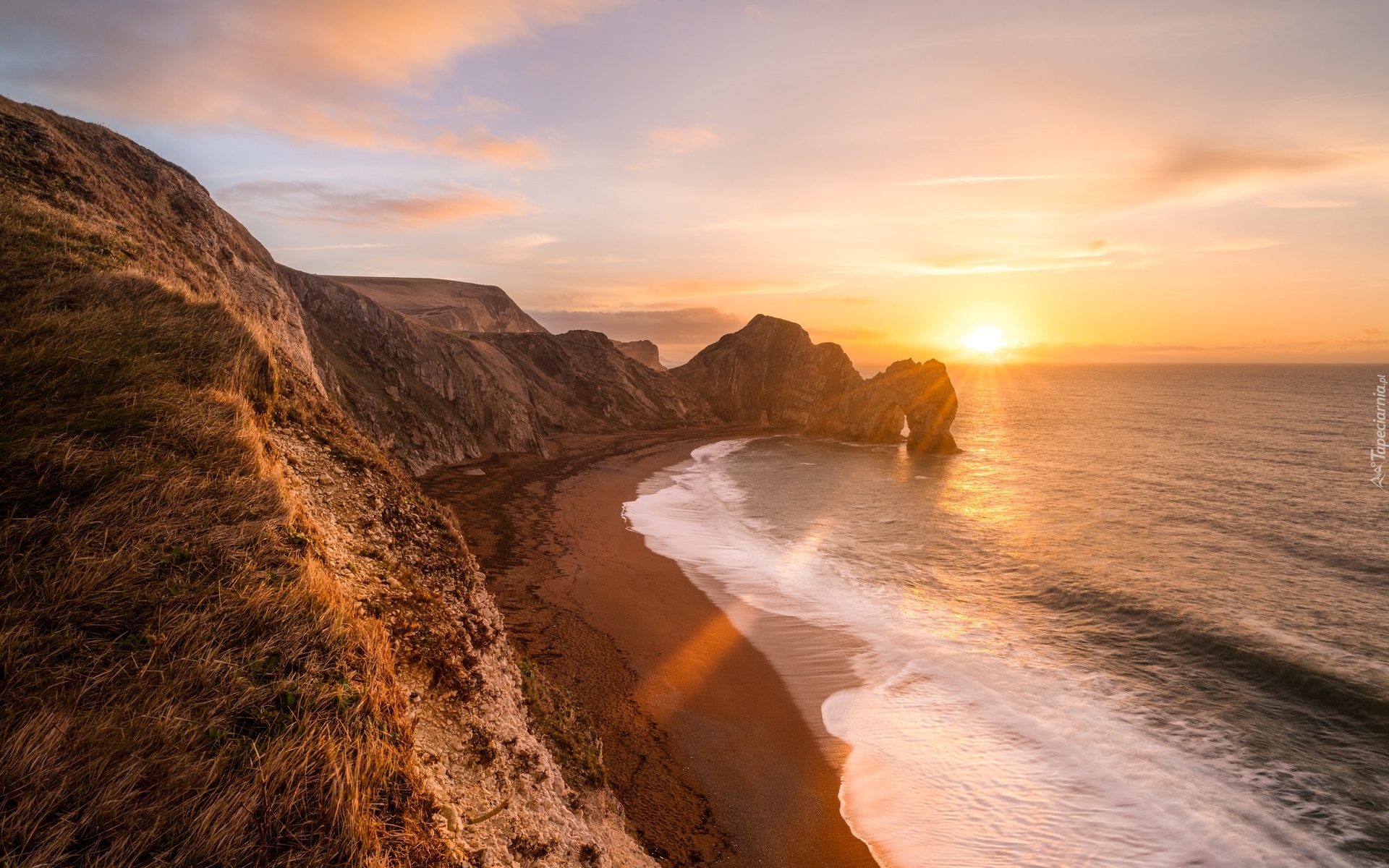 Edytor tapety: Łuk wapienny Durdle Door o poranku