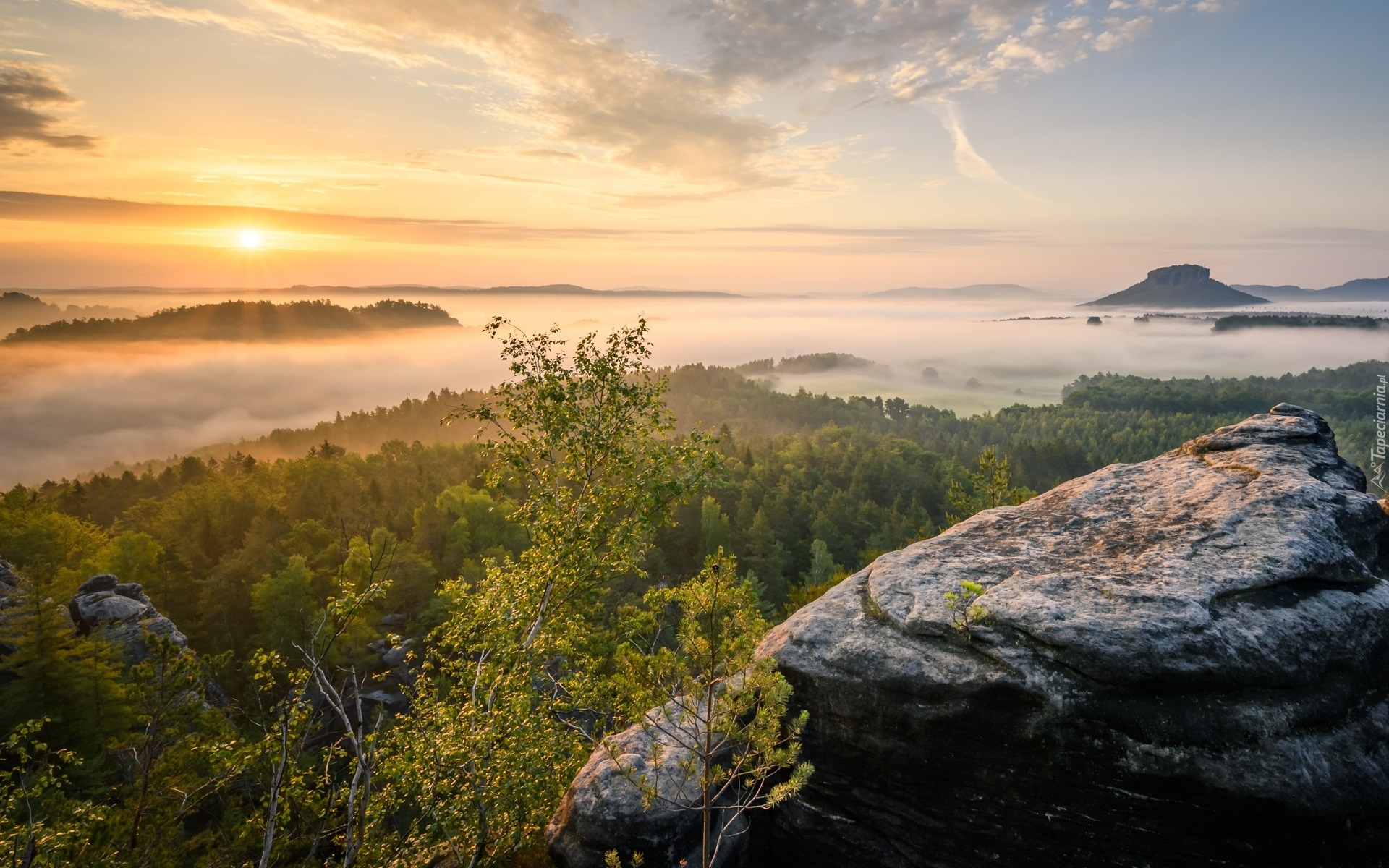 Edytor tapety: Poranna mgła nad Parkiem Narodowym Saskiej Szwajcarii