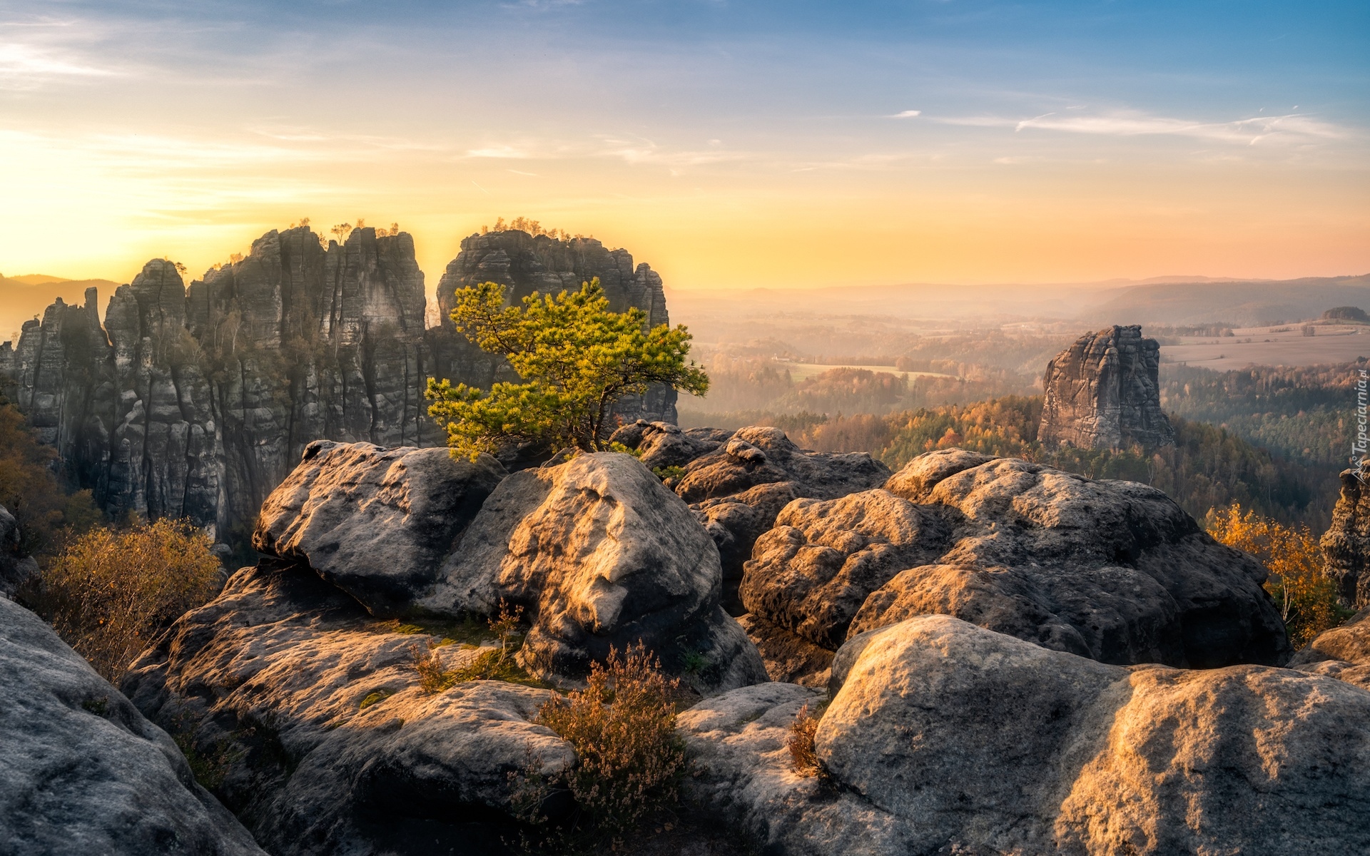 Edytor tapety: Drzewo na skałach w Górach Połabskich