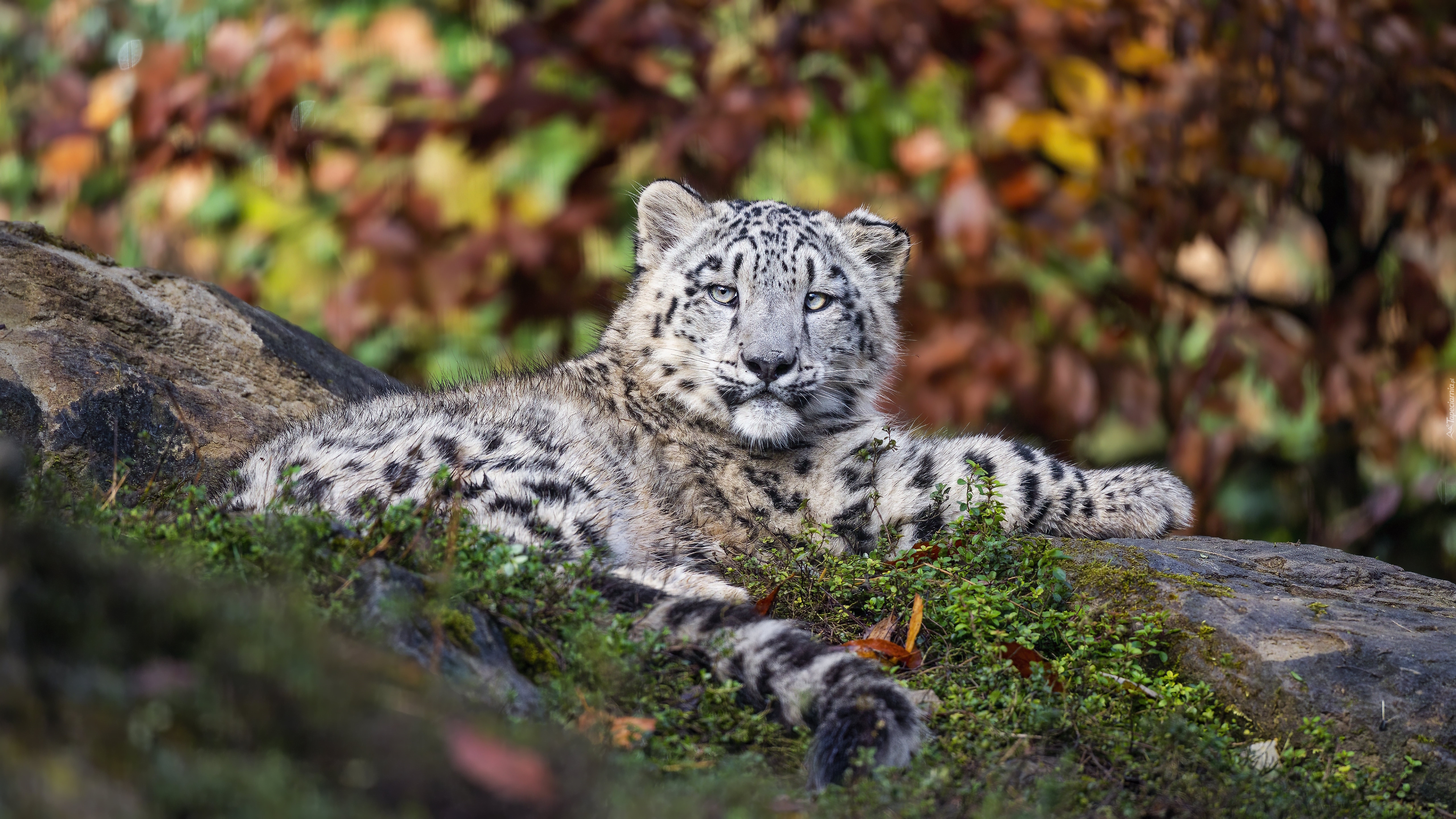 Edytor tapety: Leżący na skale irbis
