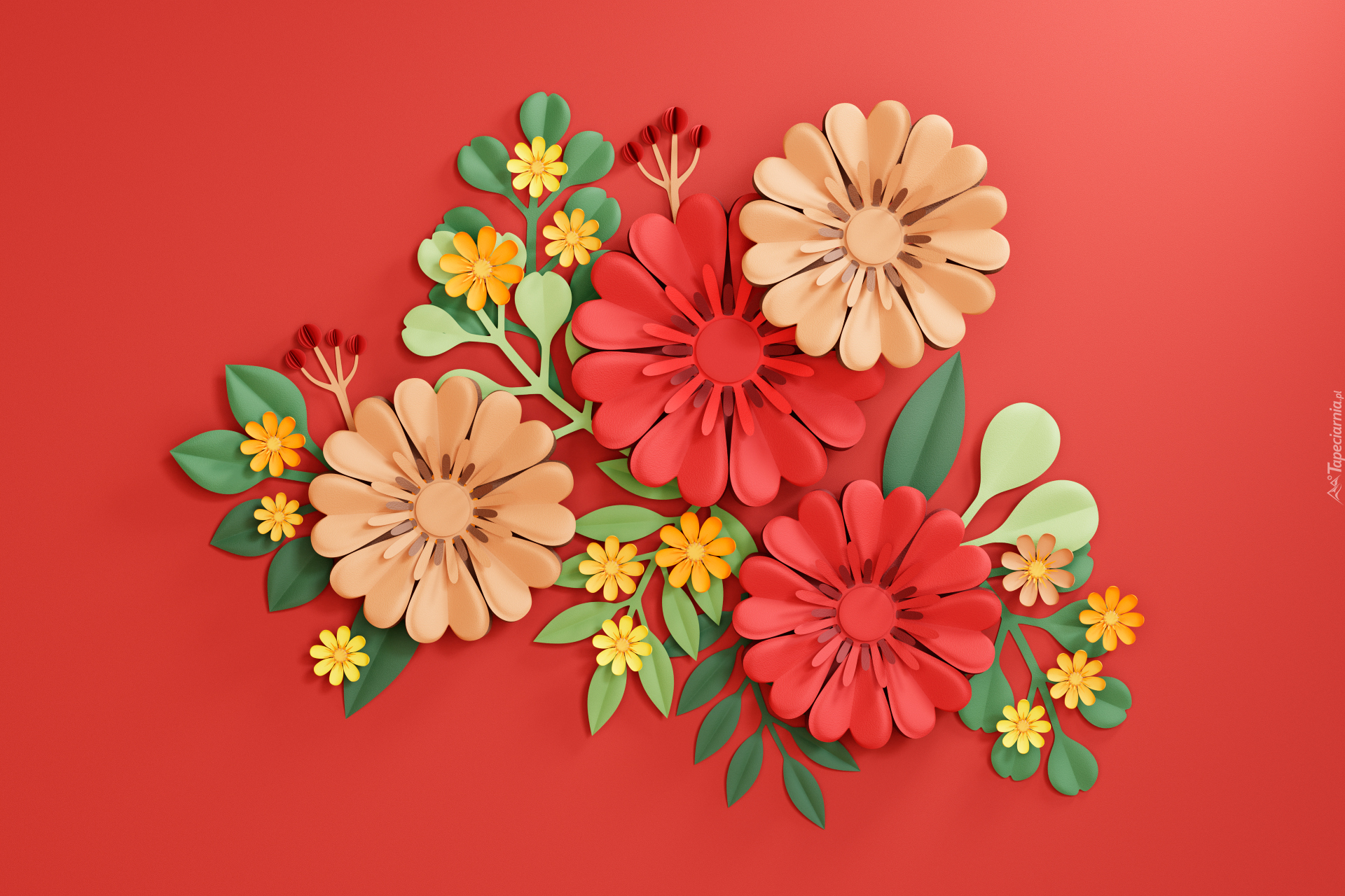 Edytor tapety: Kwiaty na czerwonym tle