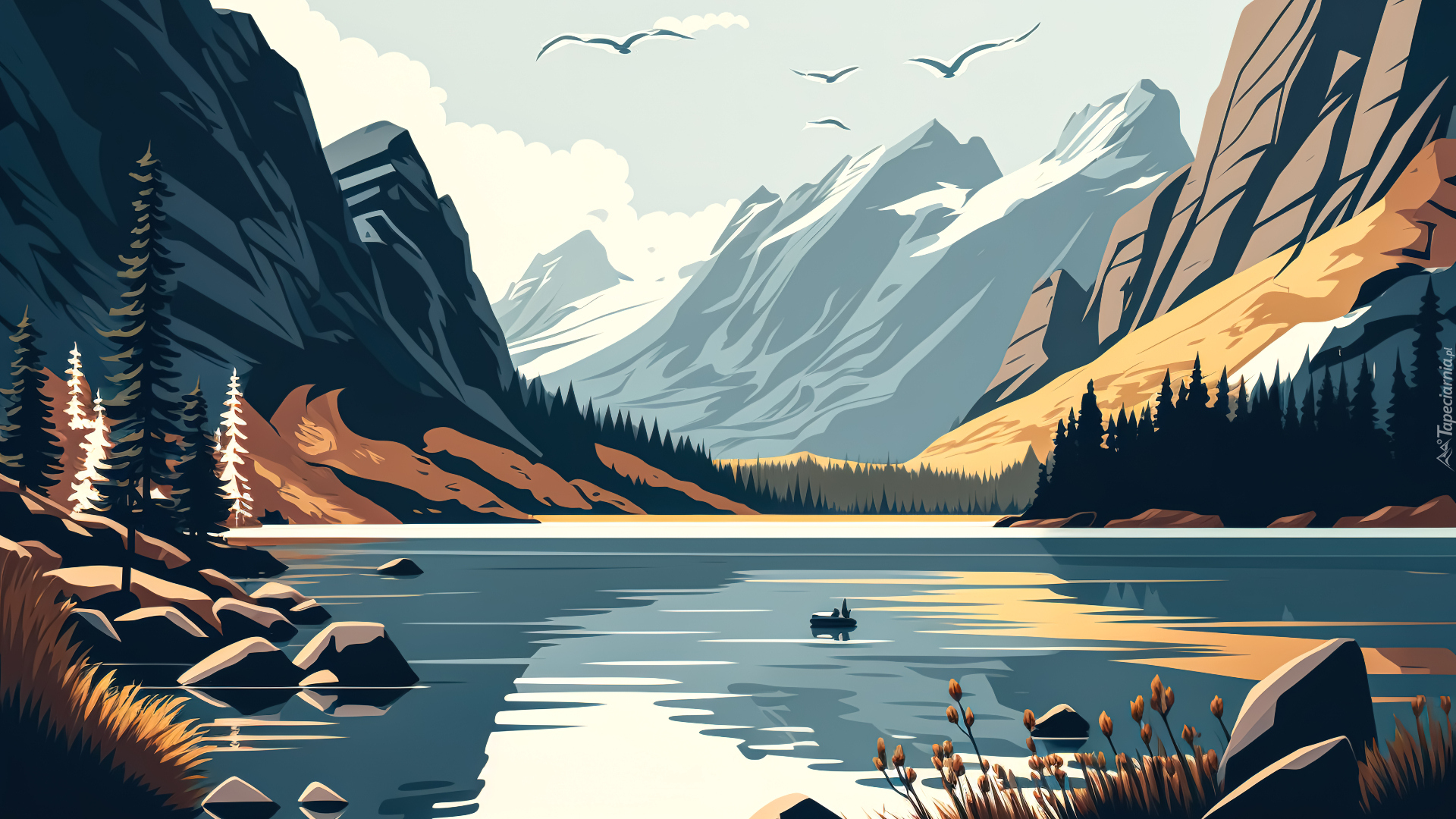 Edytor tapety: Górskie jezioro w grafice