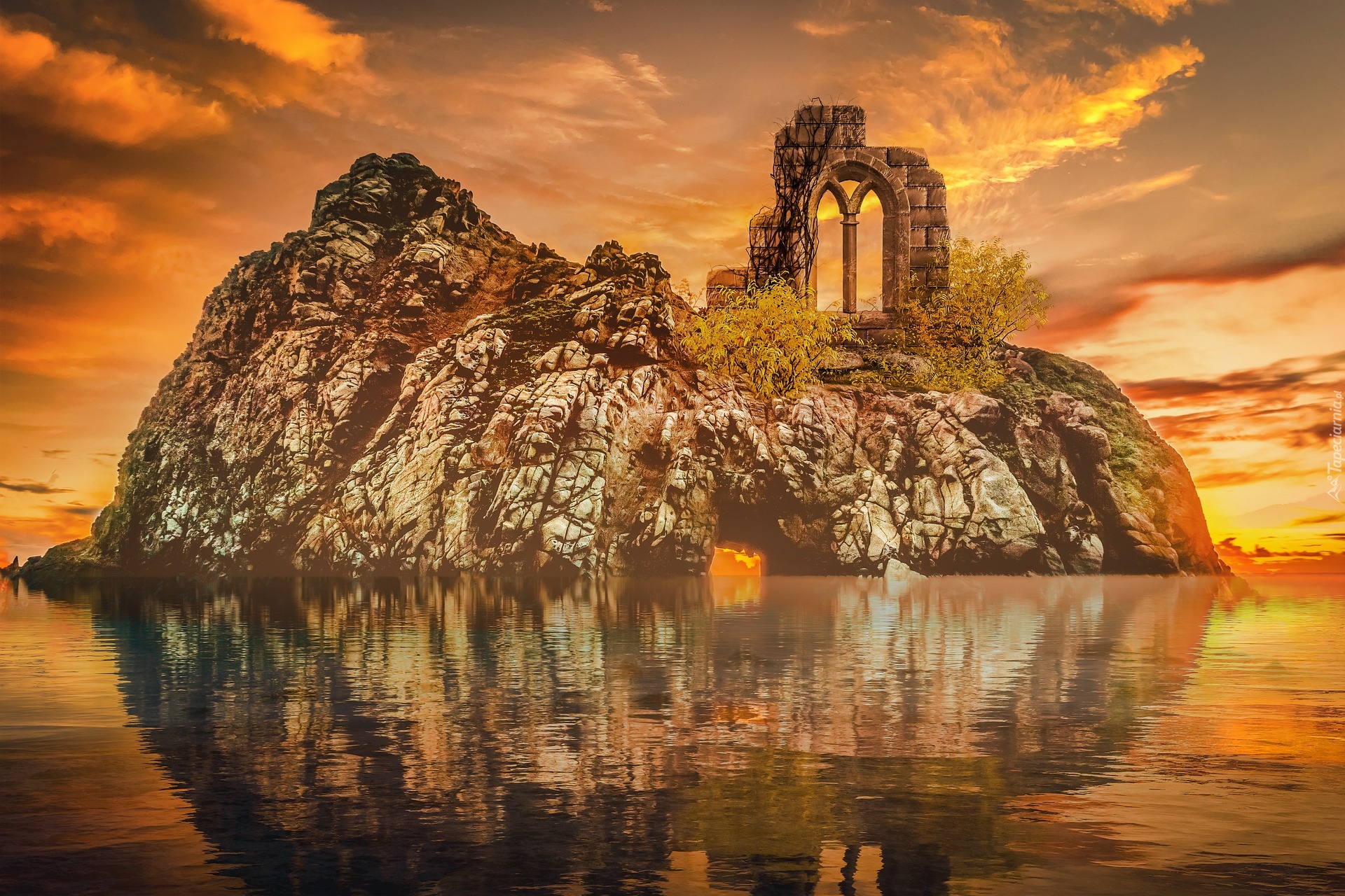 Edytor tapety: Budowla na skale w morzu