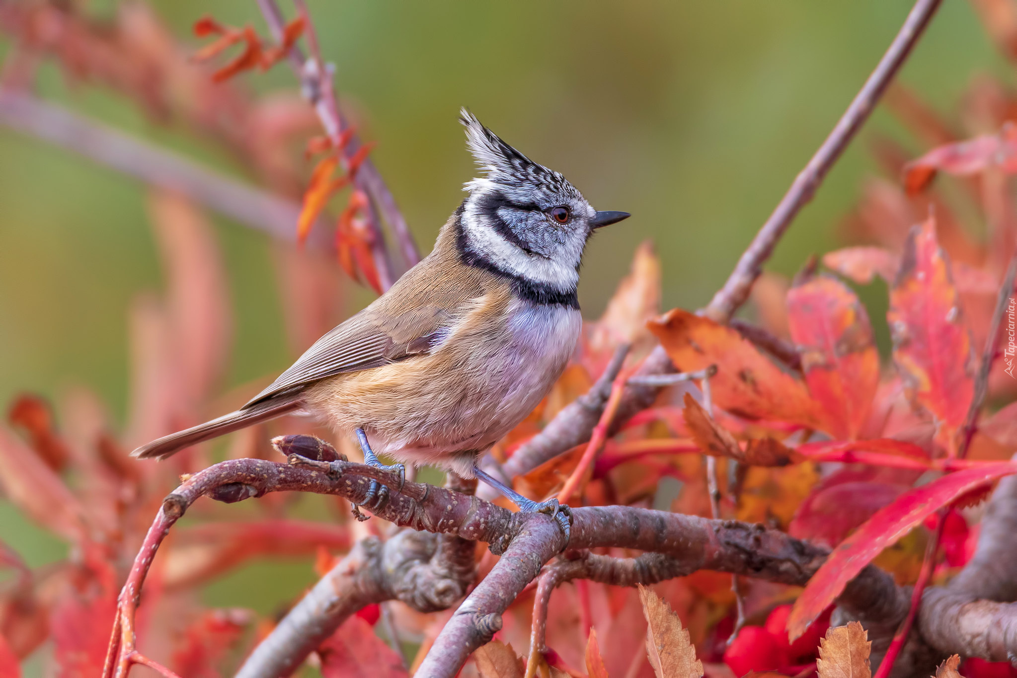 Edytor tapety: Czubatka europejska na gałęzi