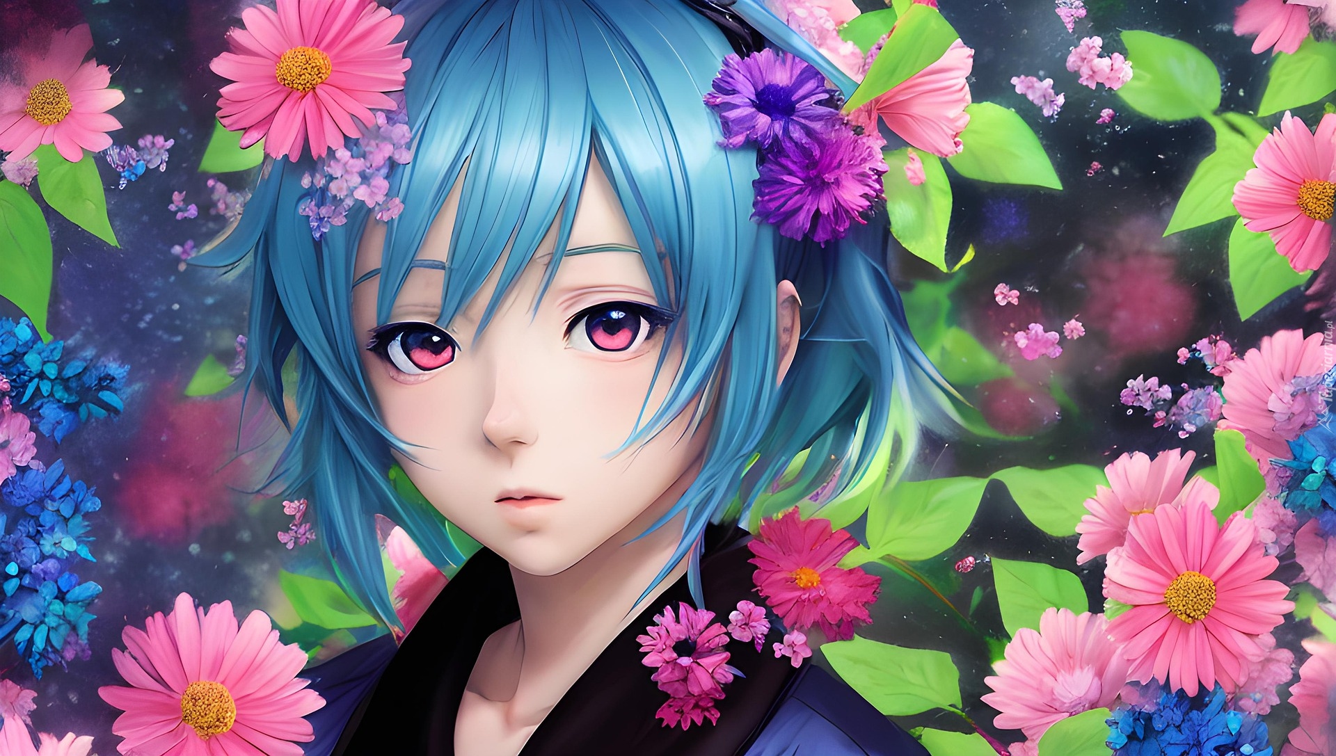 Edytor tapety: Dziewczyna z niebieskimi włosami w grafice