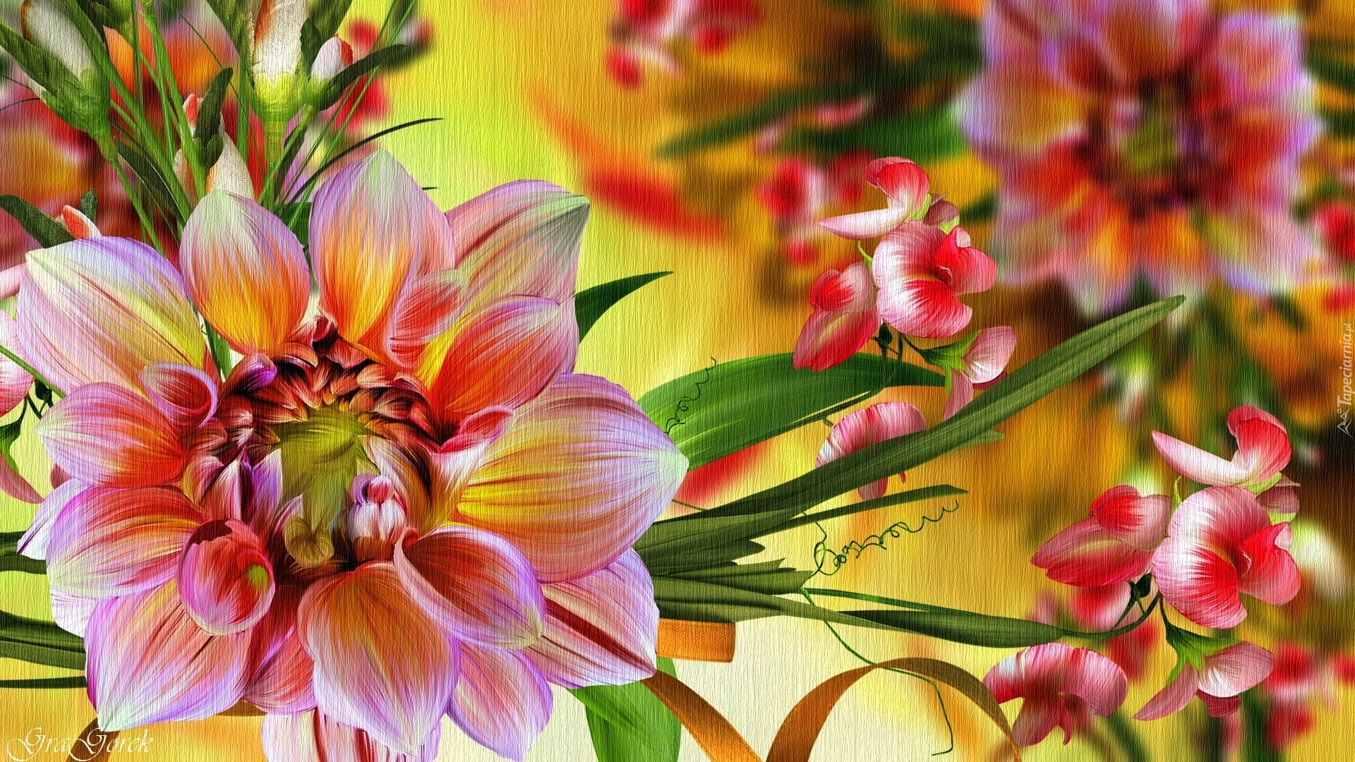 Edytor tapety: Rozkwitające graficzne kwiaty