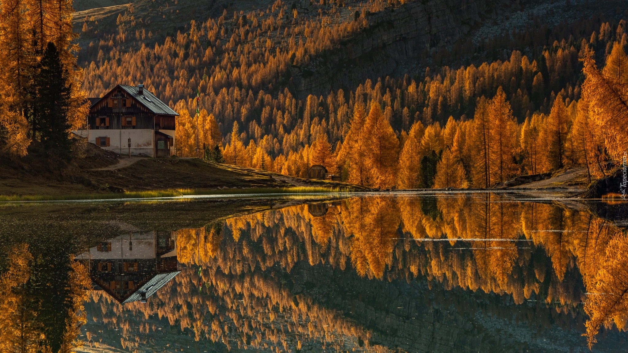 Edytor tapety: Schronisko nad brzegiem jeziora Lago Federa