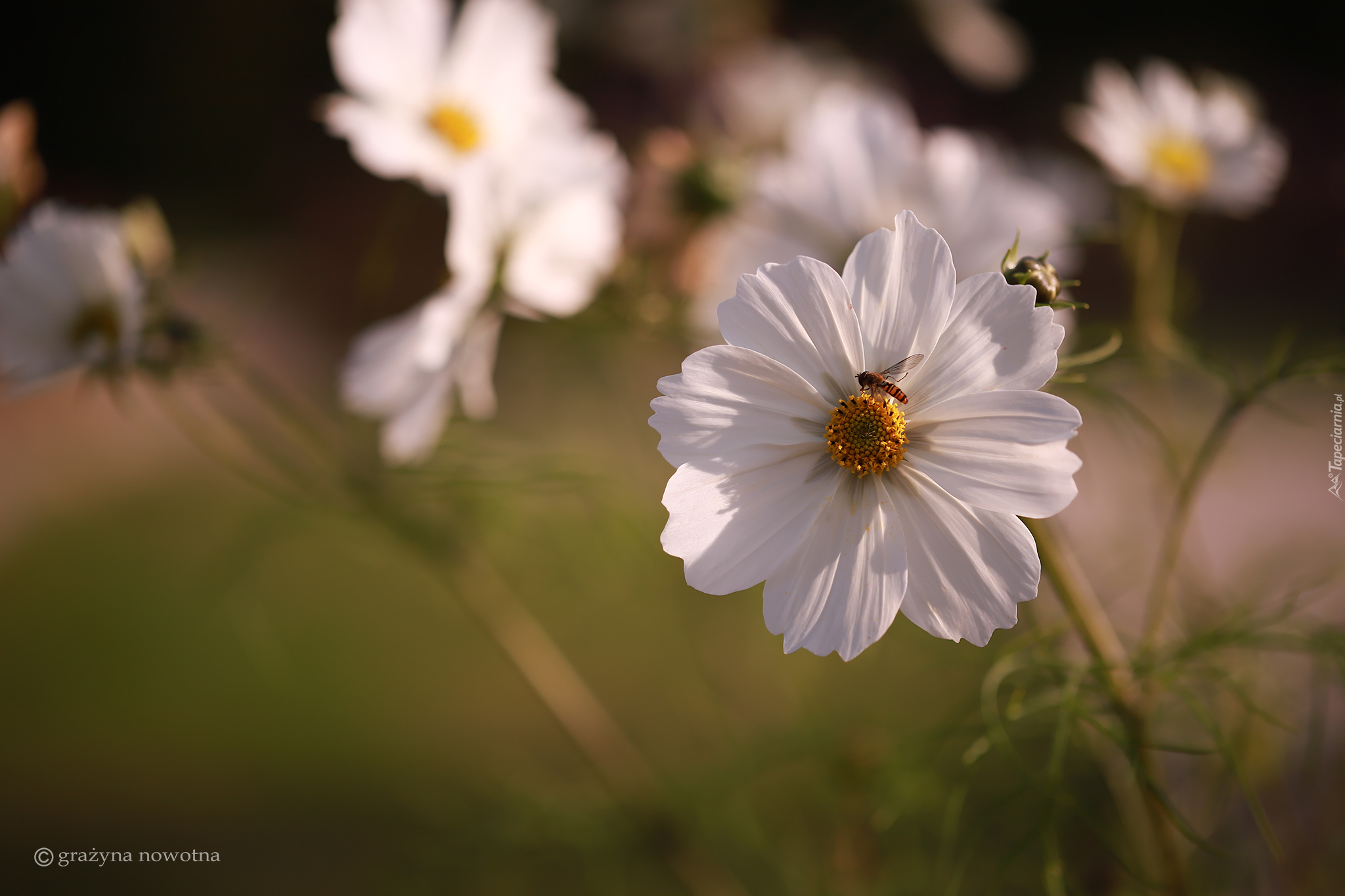 Edytor tapety: Biała kosmea w zbliżeniu na rozmytym tle