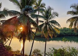 Edytor tapety: Palmy w blasku wschodzącego słońca