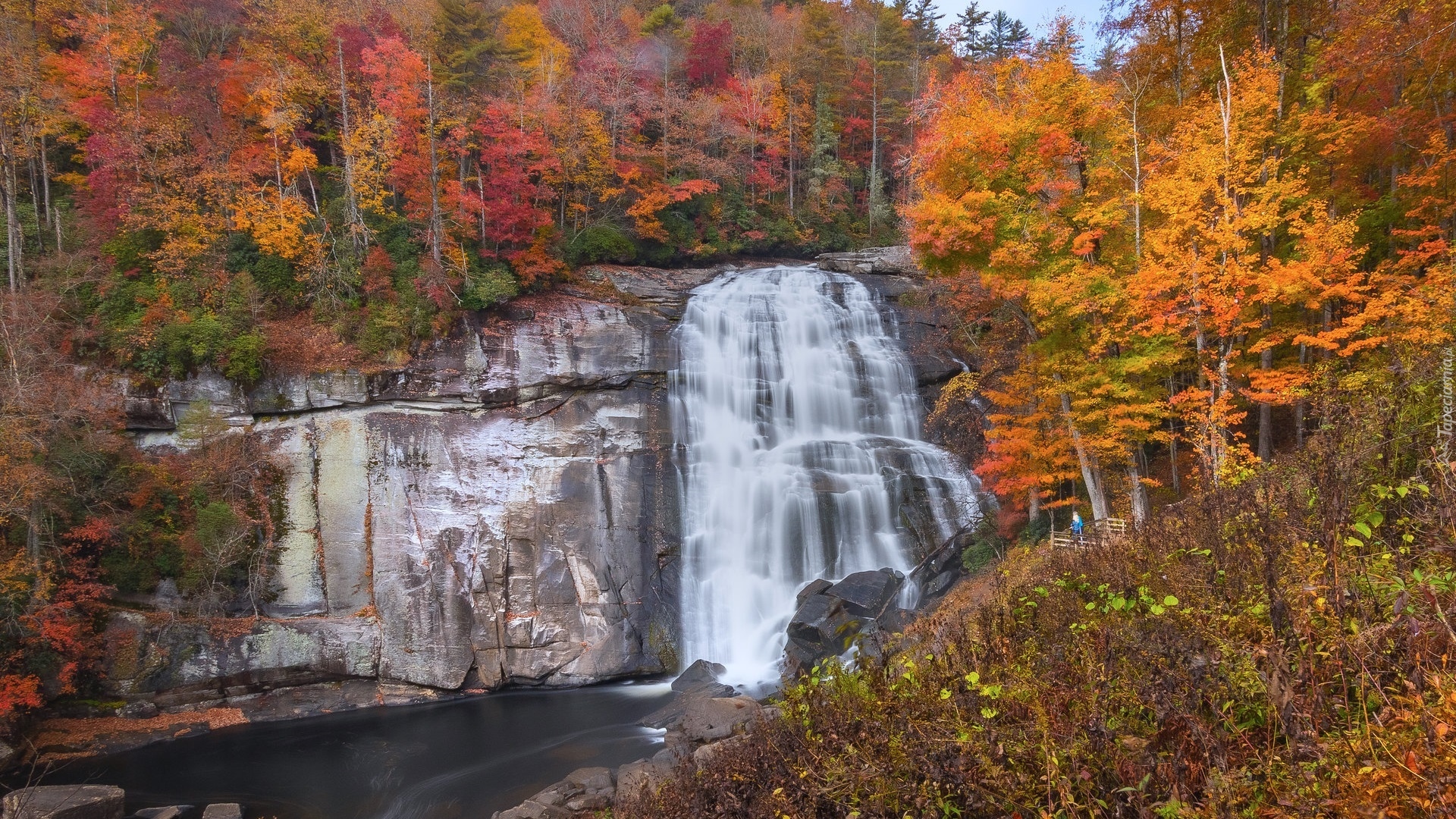 Edytor tapety: Jesienne drzewa przy wodospadzie Rainbow Falls