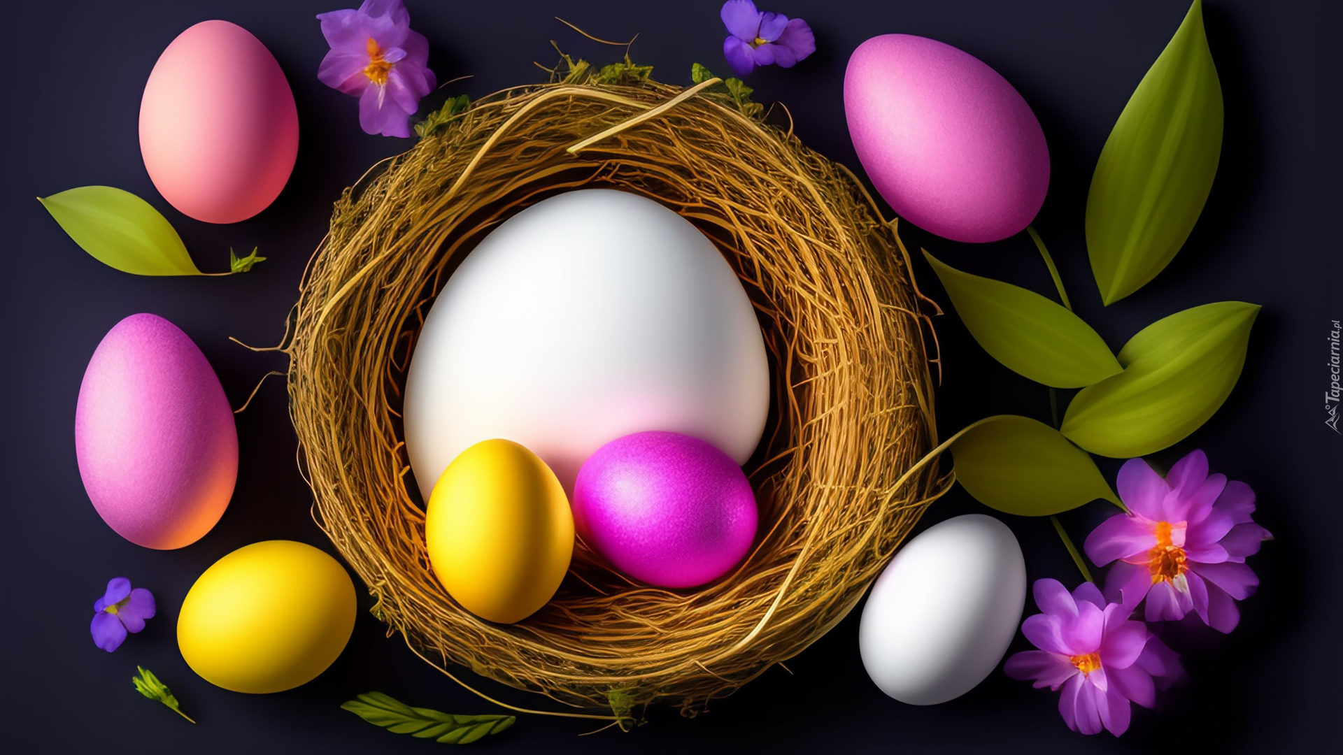 Edytor tapety: Kolorowe jajka w gniazdku i obok