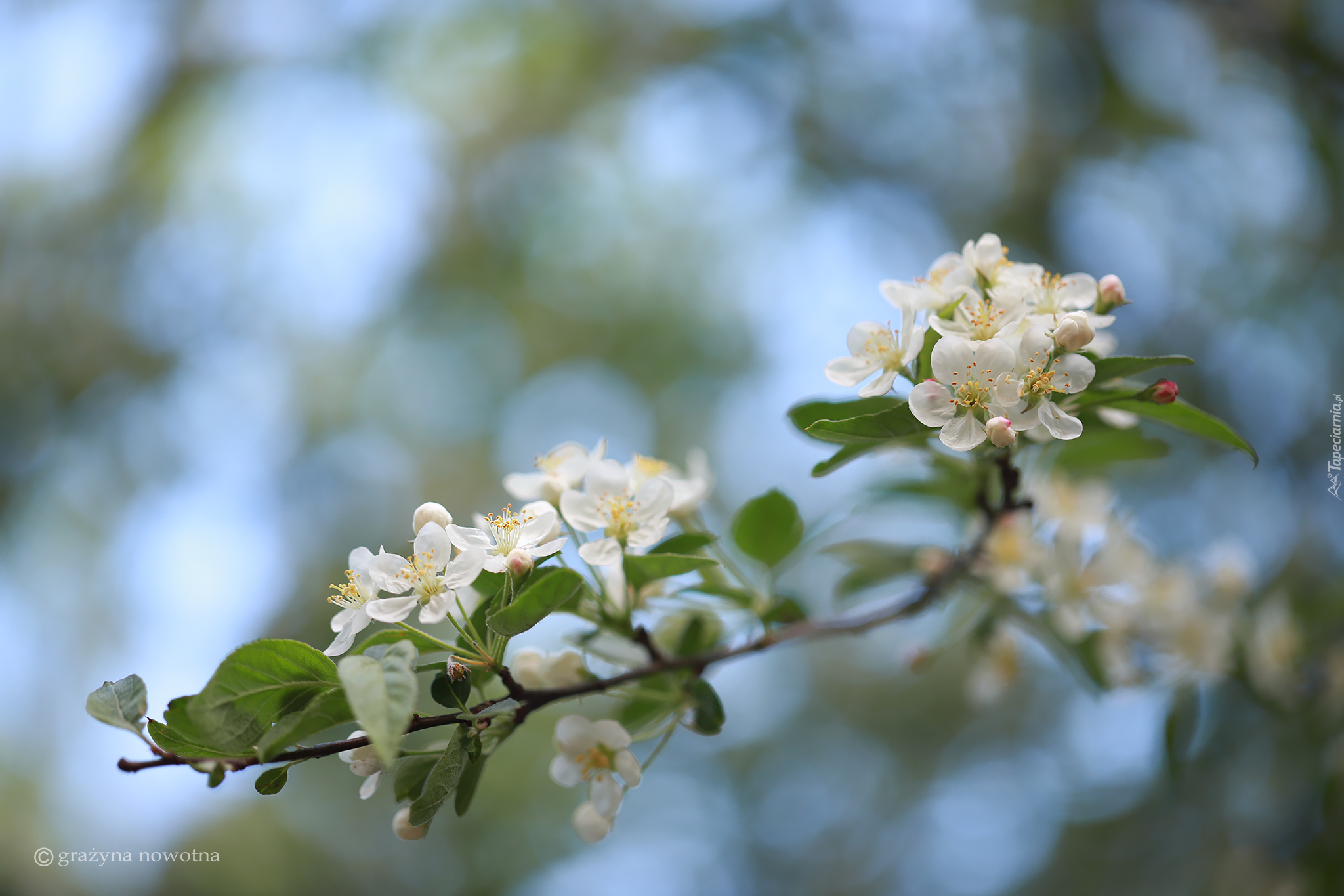 Edytor tapety: Białe kwiaty jabłoni na gałązce
