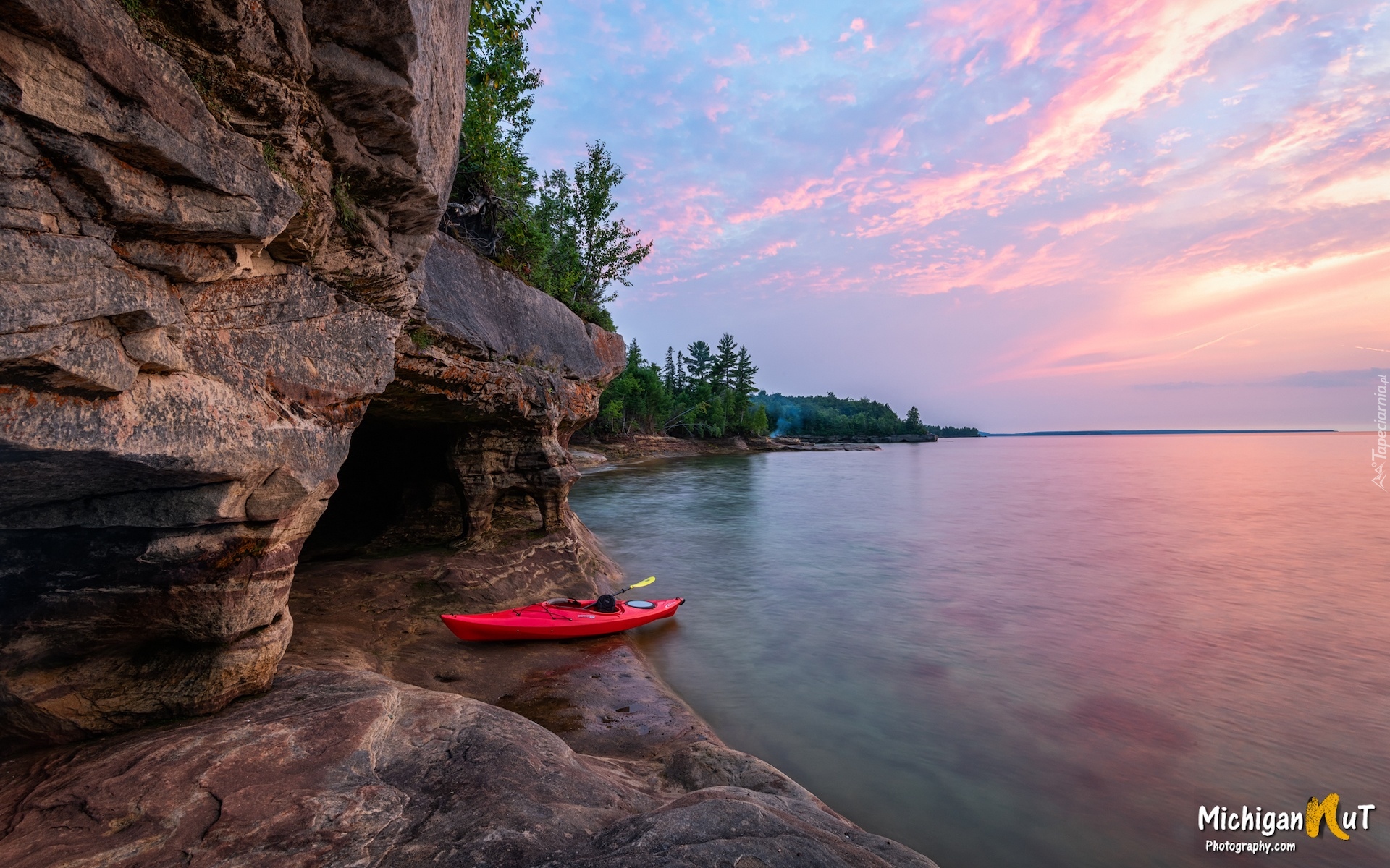Edytor tapety: Kajak przy jaskini na jeziorze Superior Lake