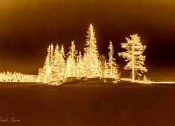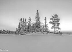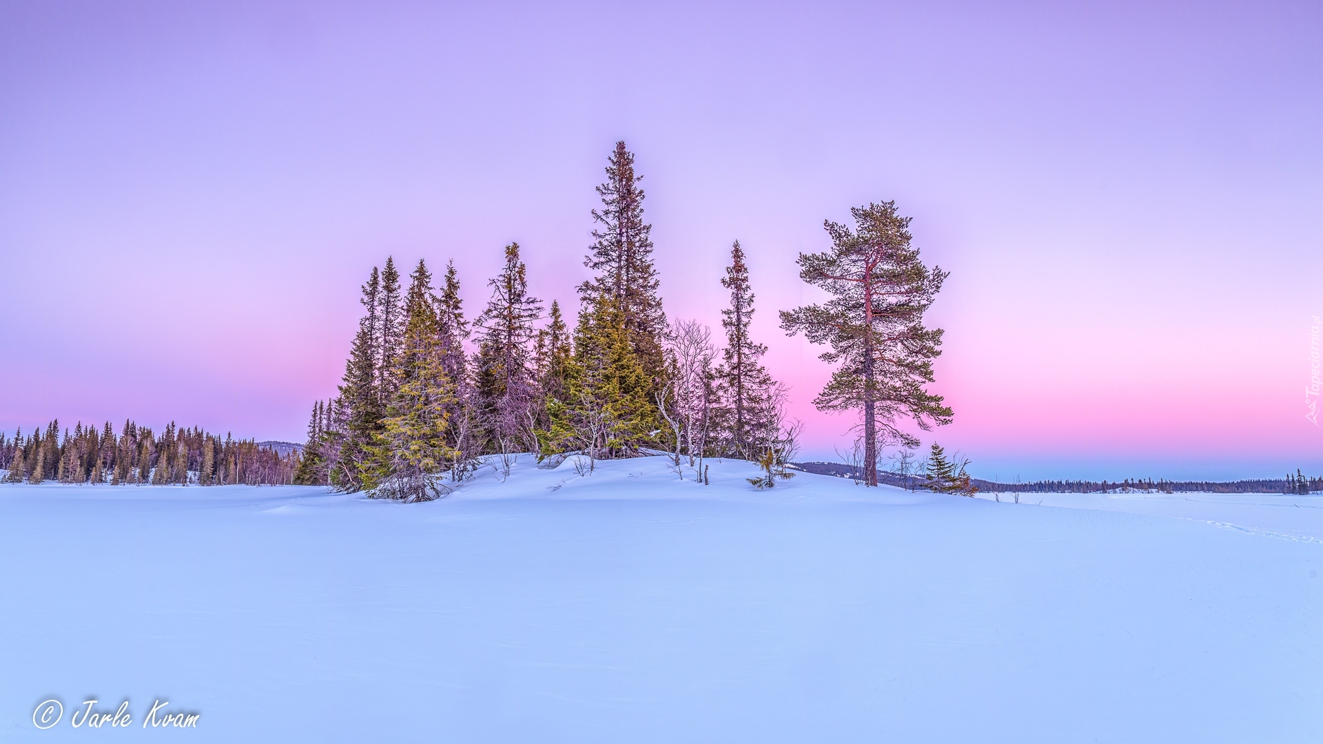 Edytor tapety: Ośnieżona polana i drzewa w tle