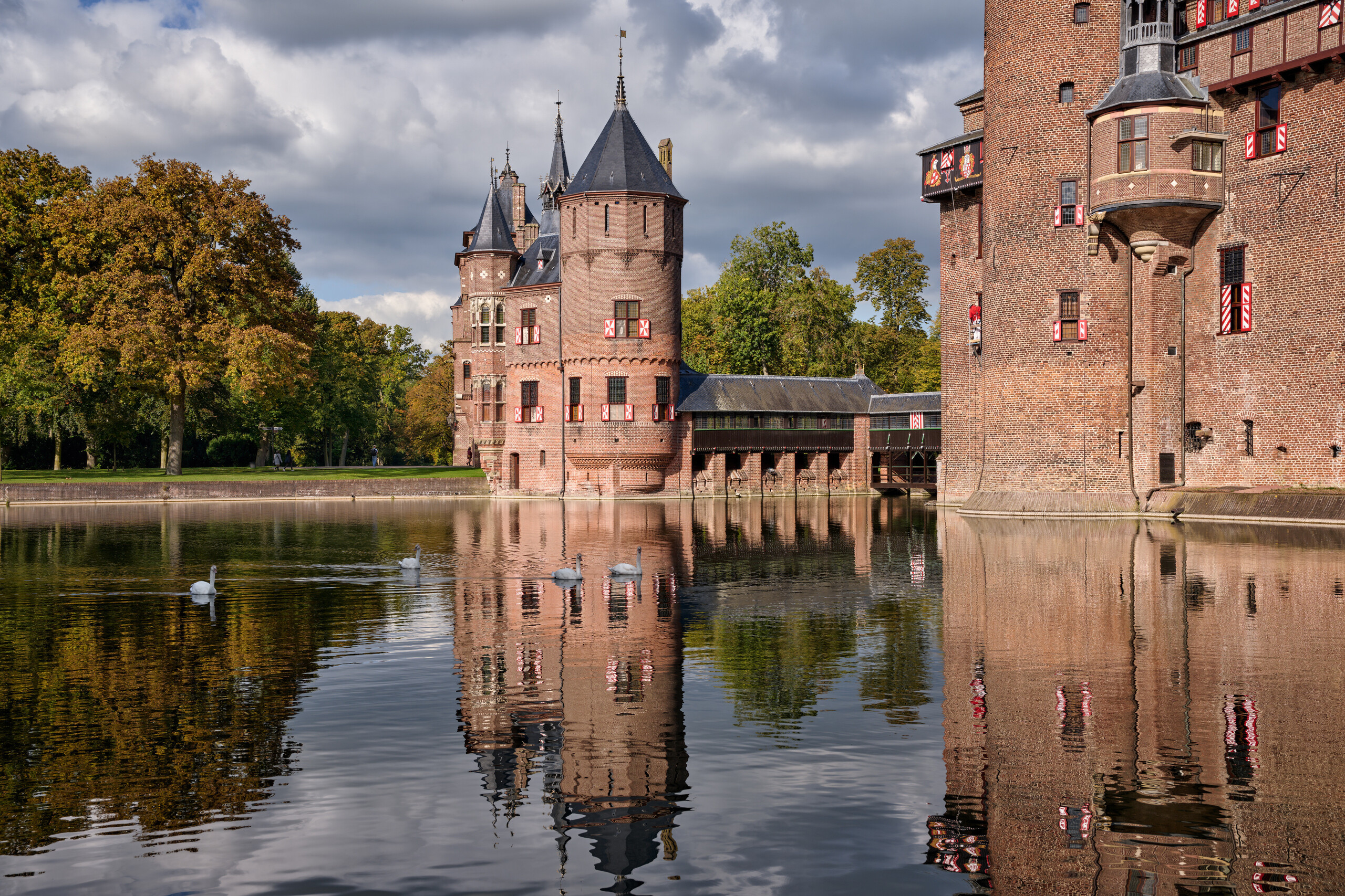 Edytor tapety: Zamek De Haar nad stawem w Utrechcie