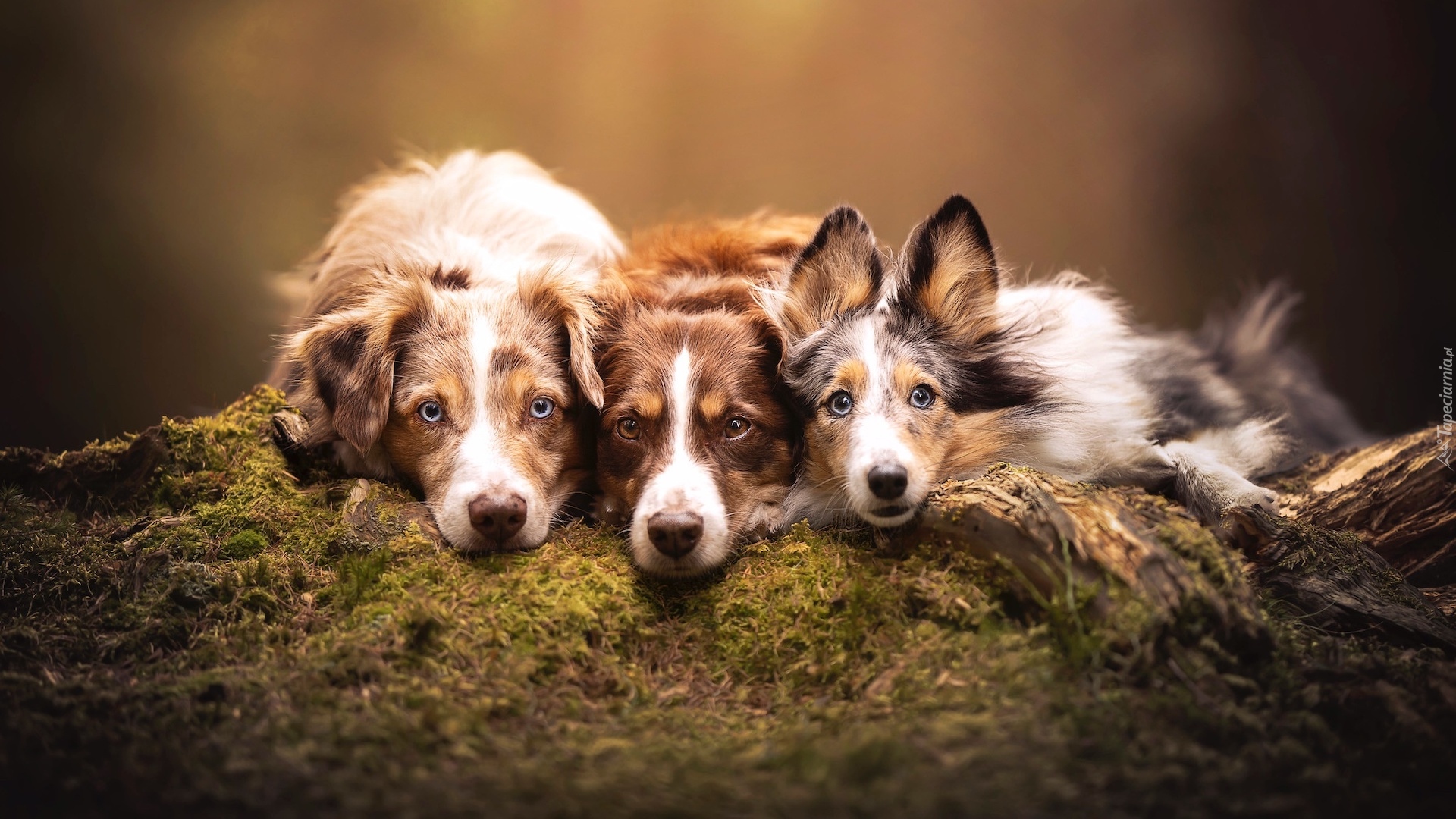 Edytor tapety: Trzy psy leżące na mchu
