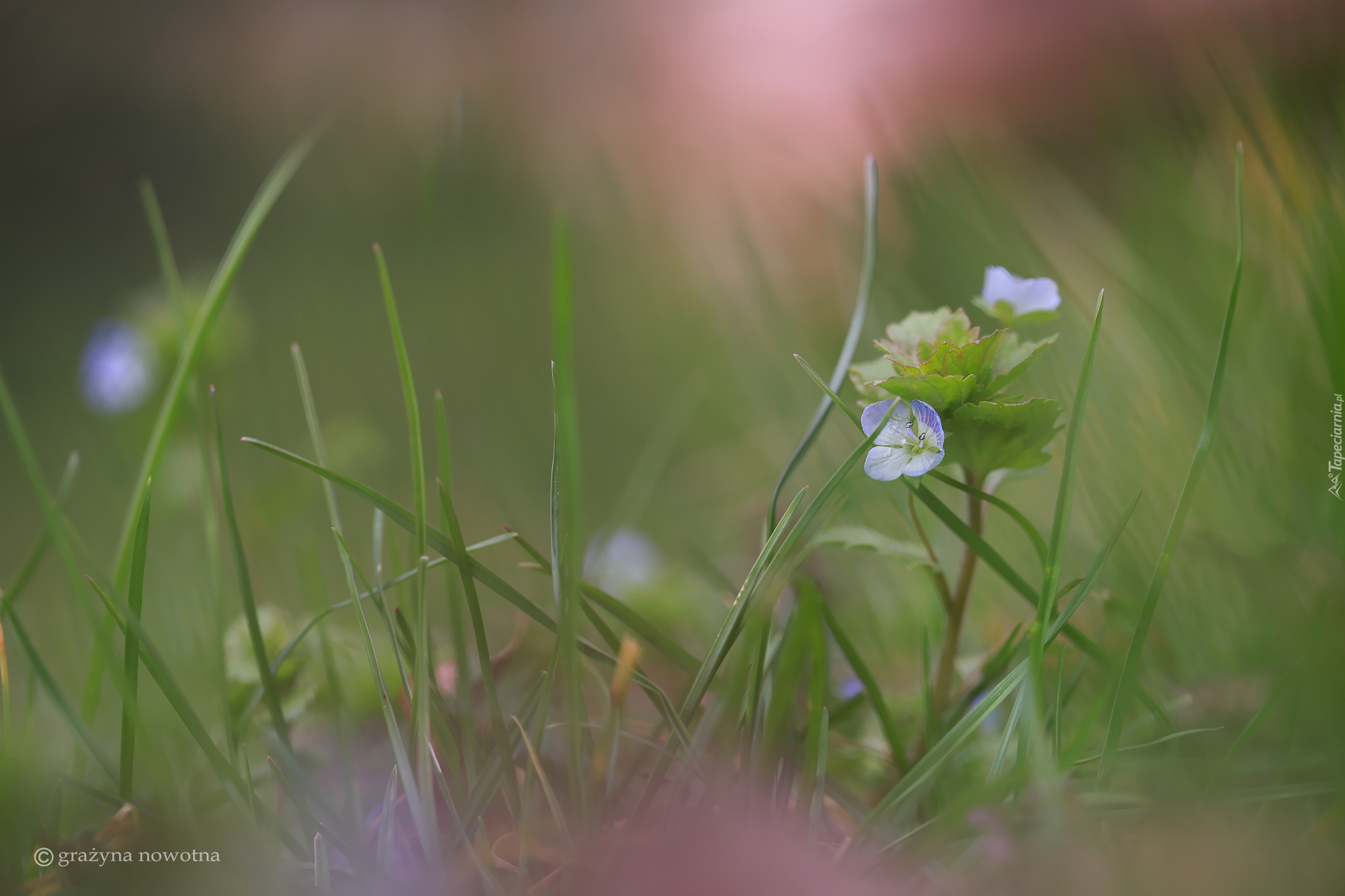 Edytor tapety: Przetacznik w trawie na zamglonym tle