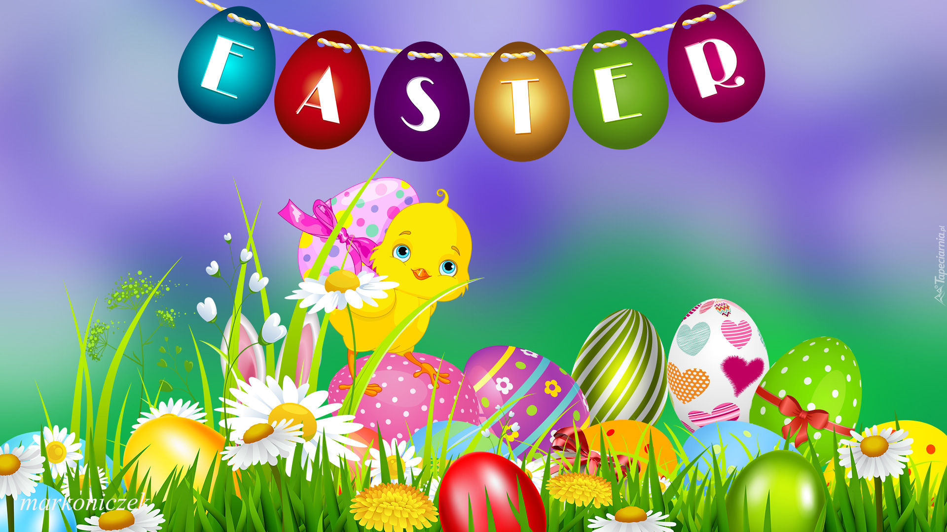 Edytor tapety: Kurczaczek i pisanki w trawie