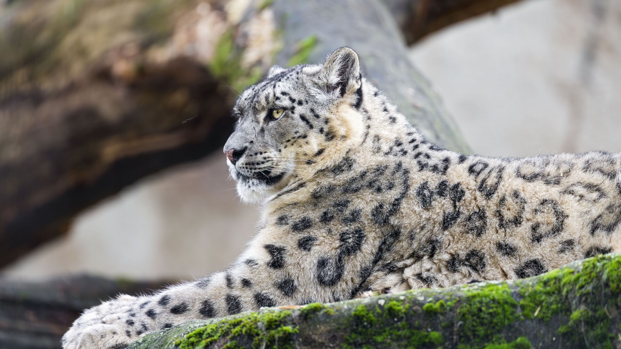 Edytor tapety: Irbis wypoczywający na omszałej skale