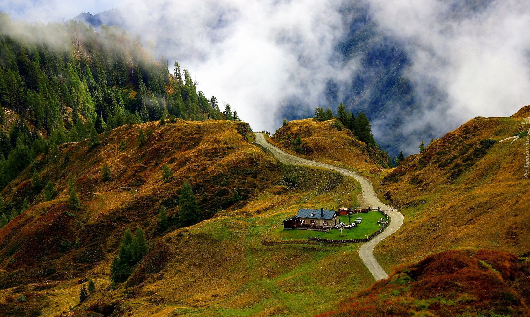 Edytor tapety: Dom przy szlaku w Wysokich Taurach