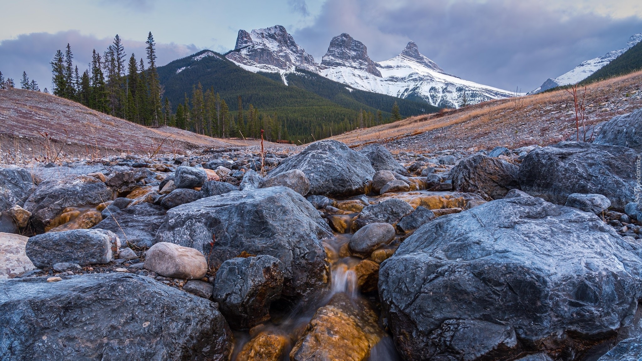 Edytor tapety: Widok na górę Three Sisters w Kanadzie