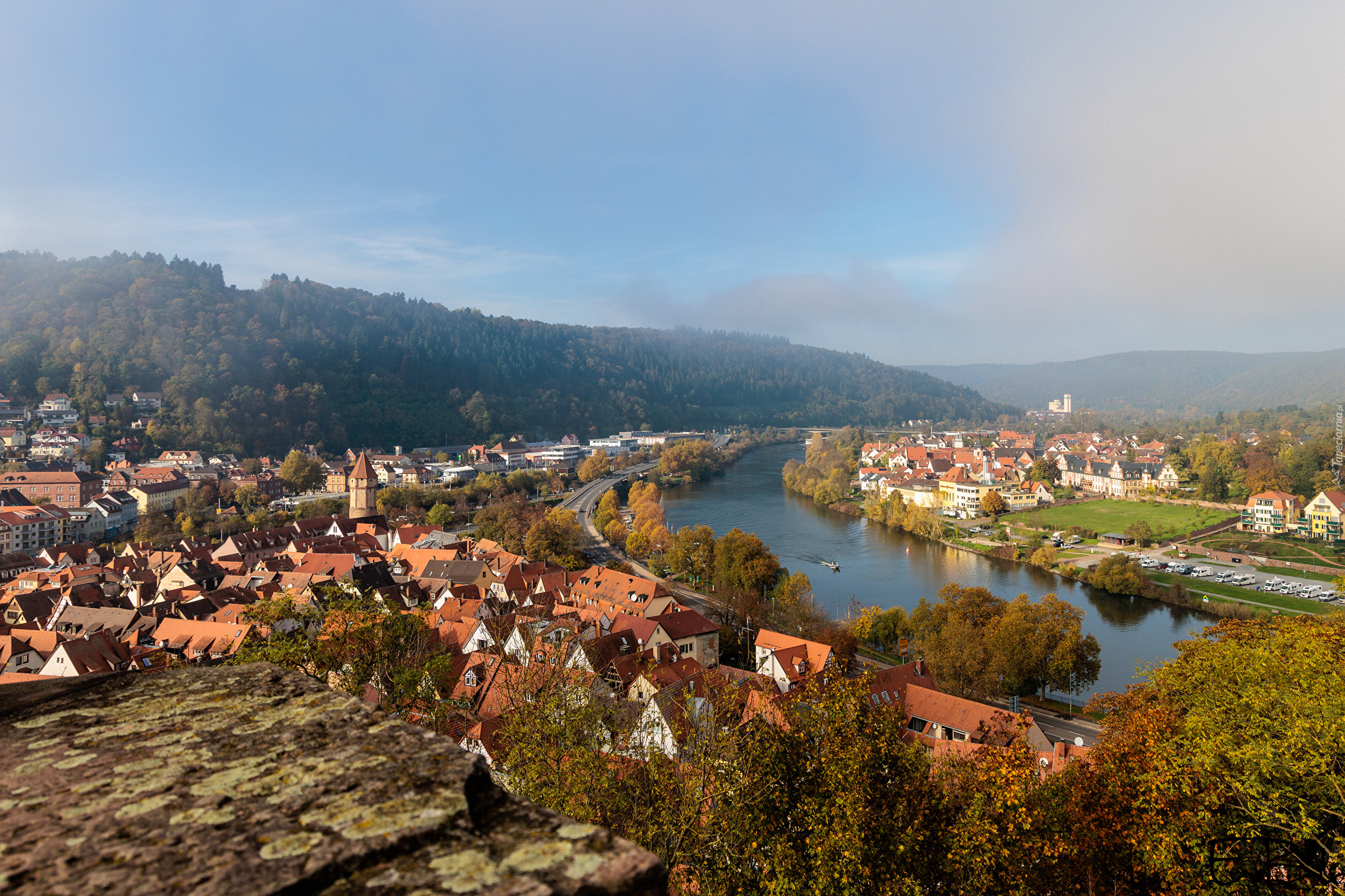 Edytor tapety: Panorama miasta Wertheim nad Menem w Niemczech