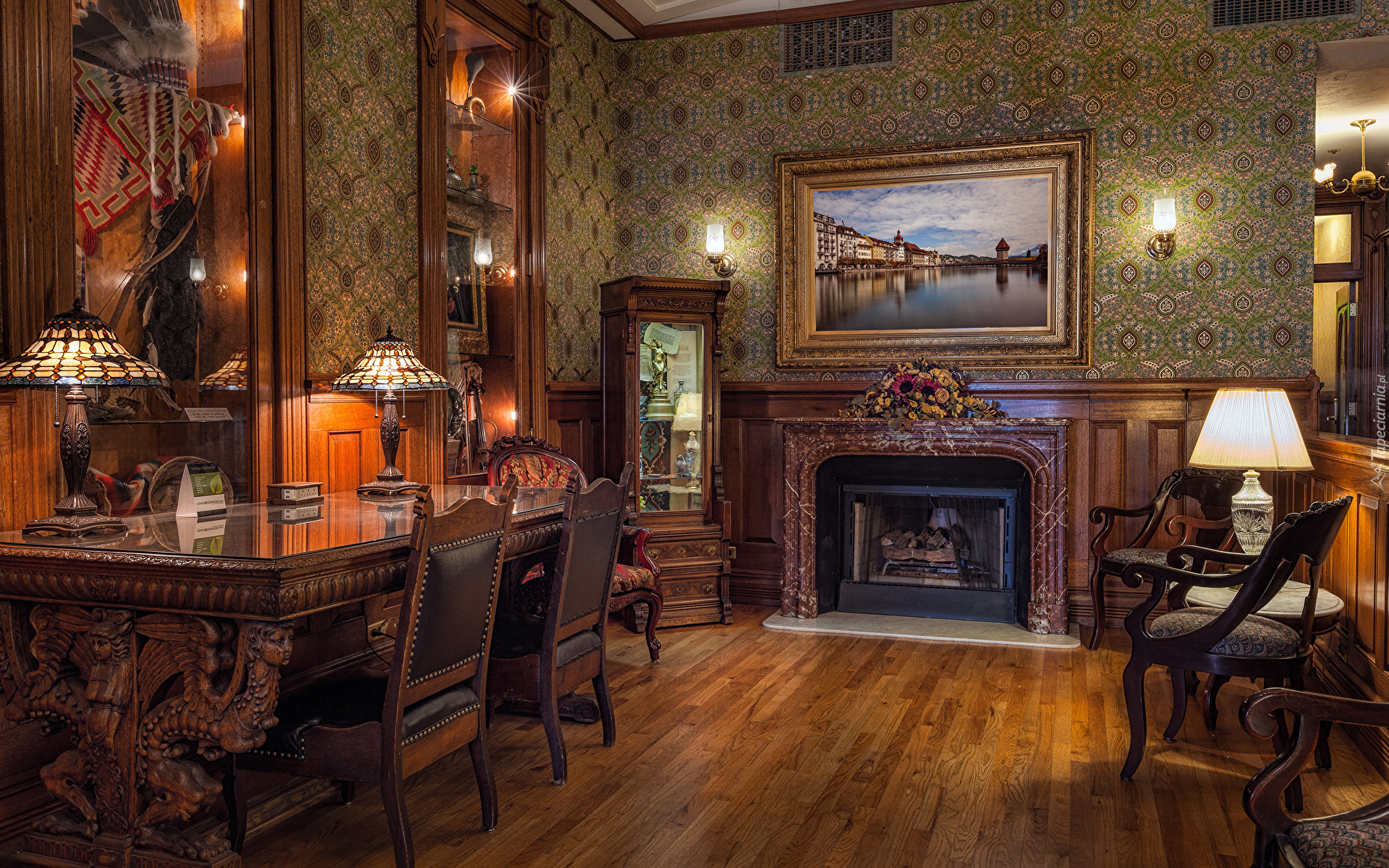 Edytor tapety: Stylowy pokój z obrazem nad kominkiem