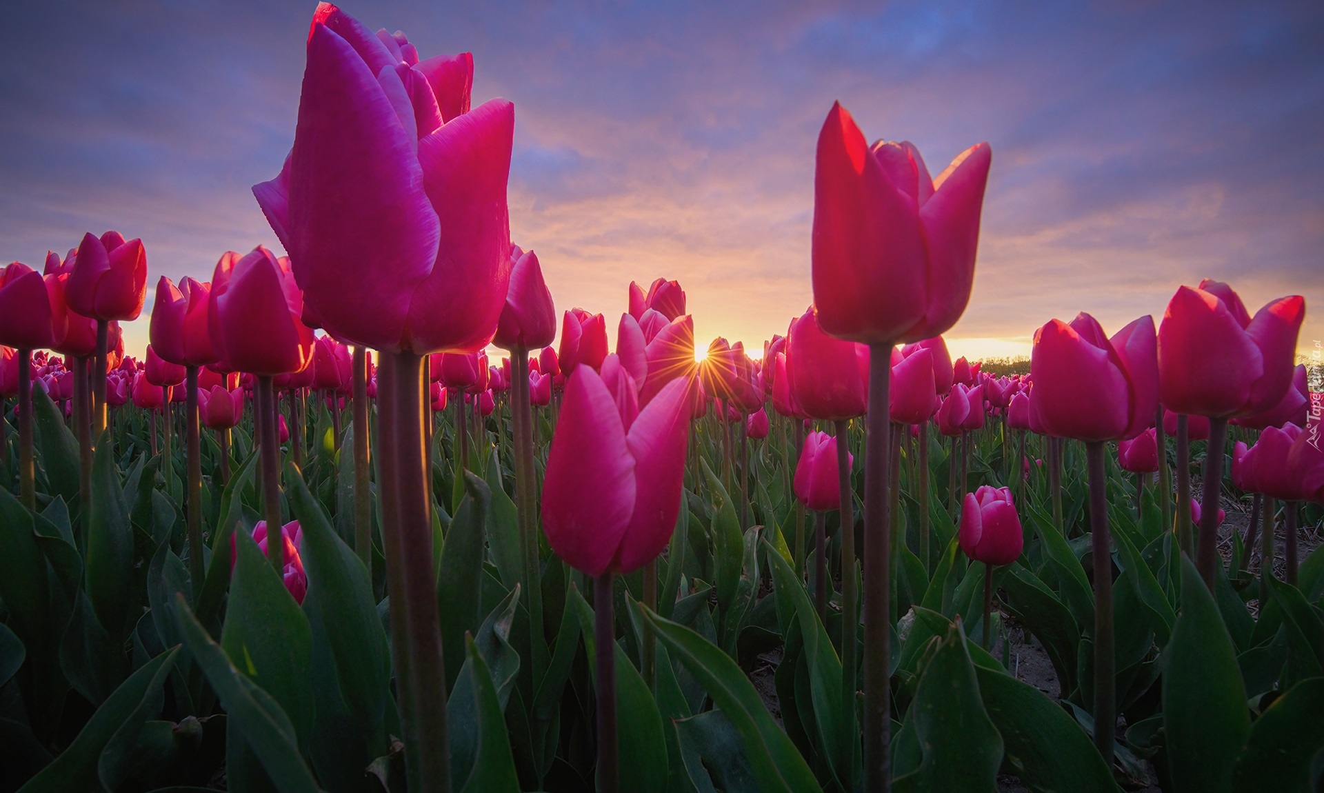 Edytor tapety: Plantacja kwitnących różowych tulipanów