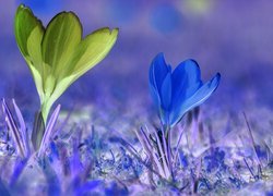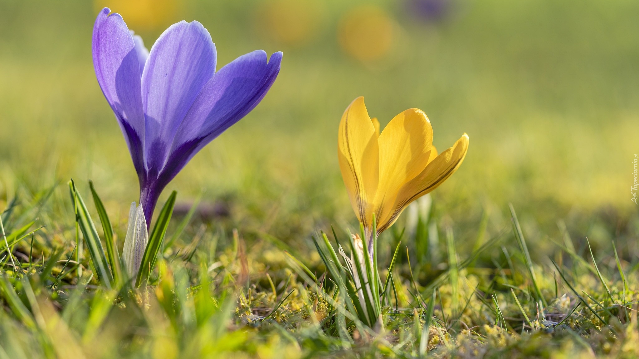 Edytor tapety: Kwitnący żółty i fioletowy krokus
