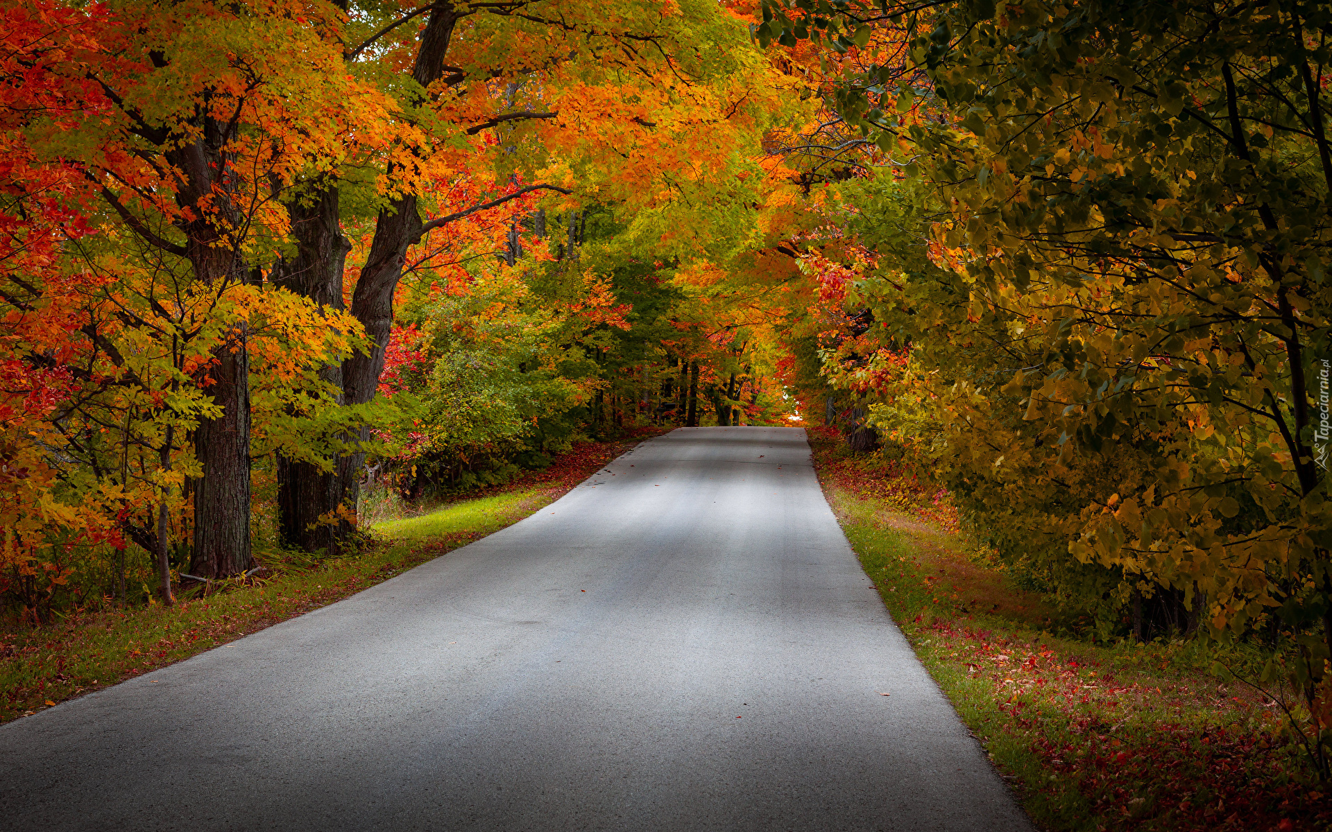 Edytor tapety: Droga wśród drzew w jesiennym lesie