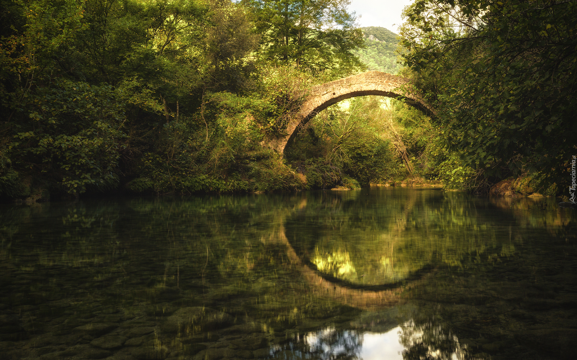 Edytor tapety: Odbicie kamiennego mostu łukowego w rzece