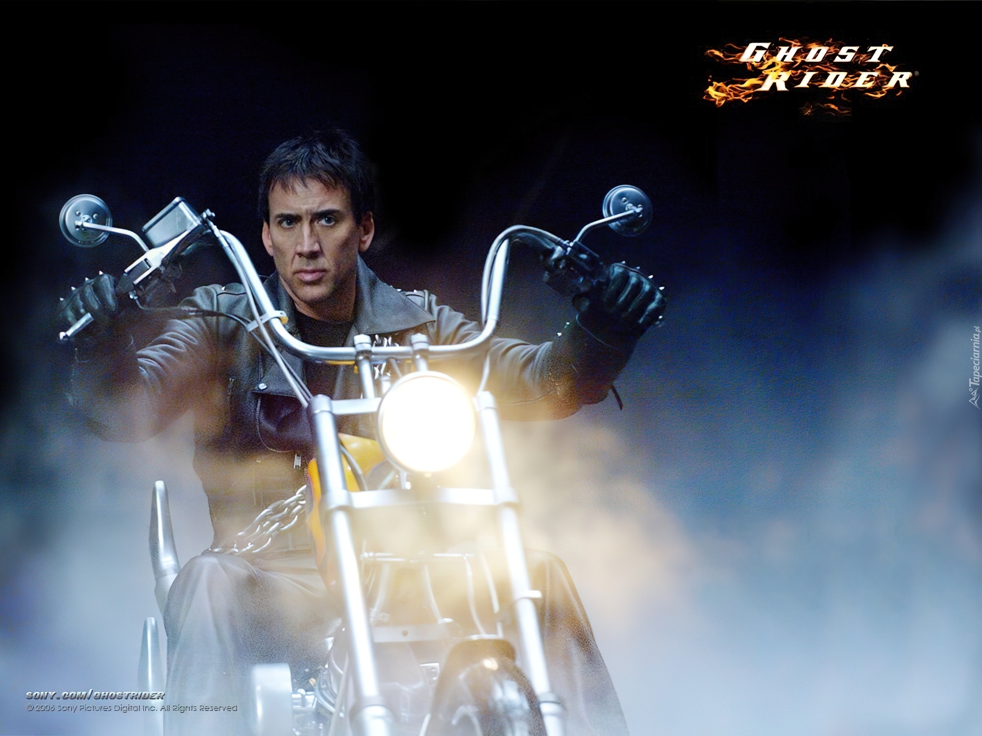 Edytor tapety: motocykl, dym, Ghost Rider, Nicolas Cage