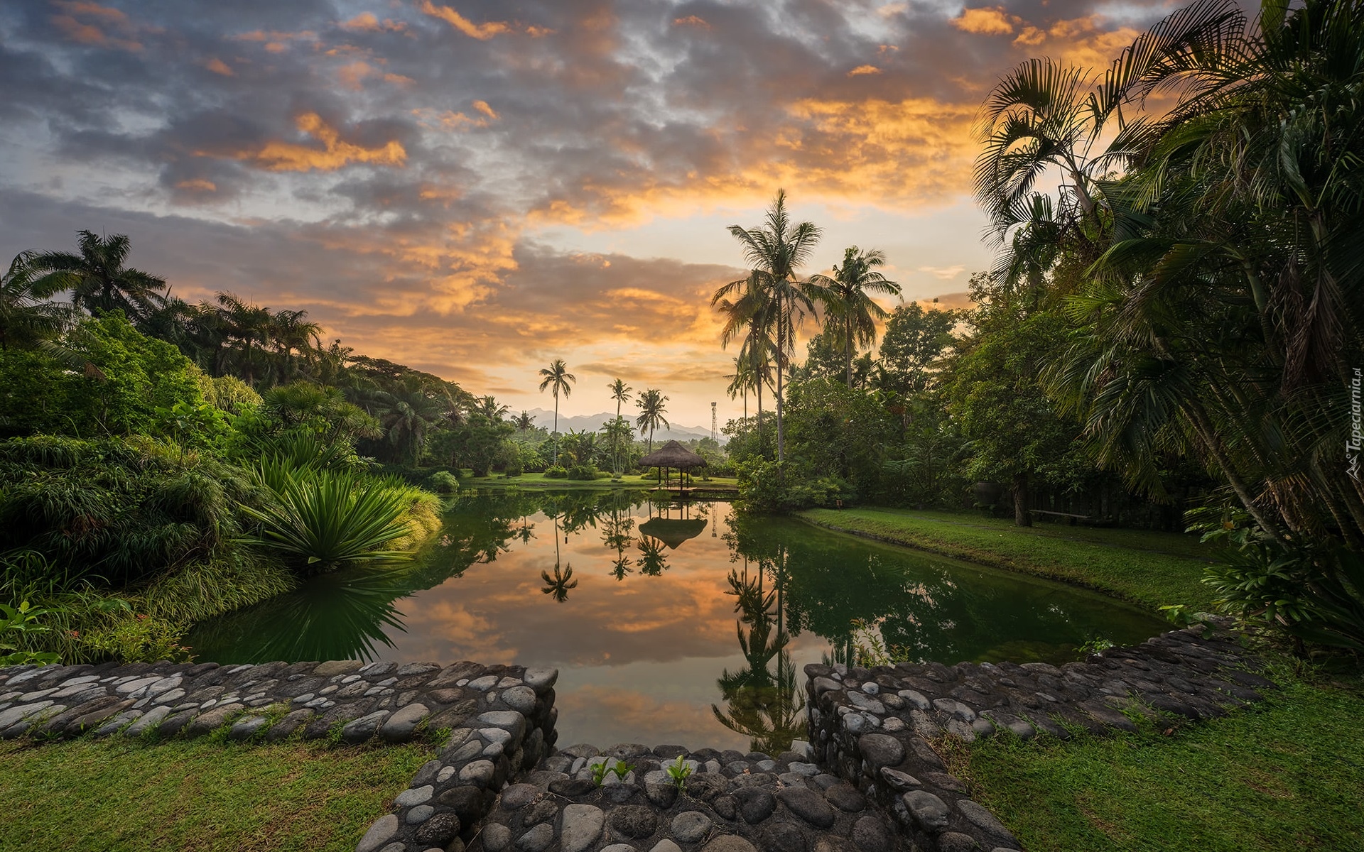Edytor tapety: Palmy nad stawem