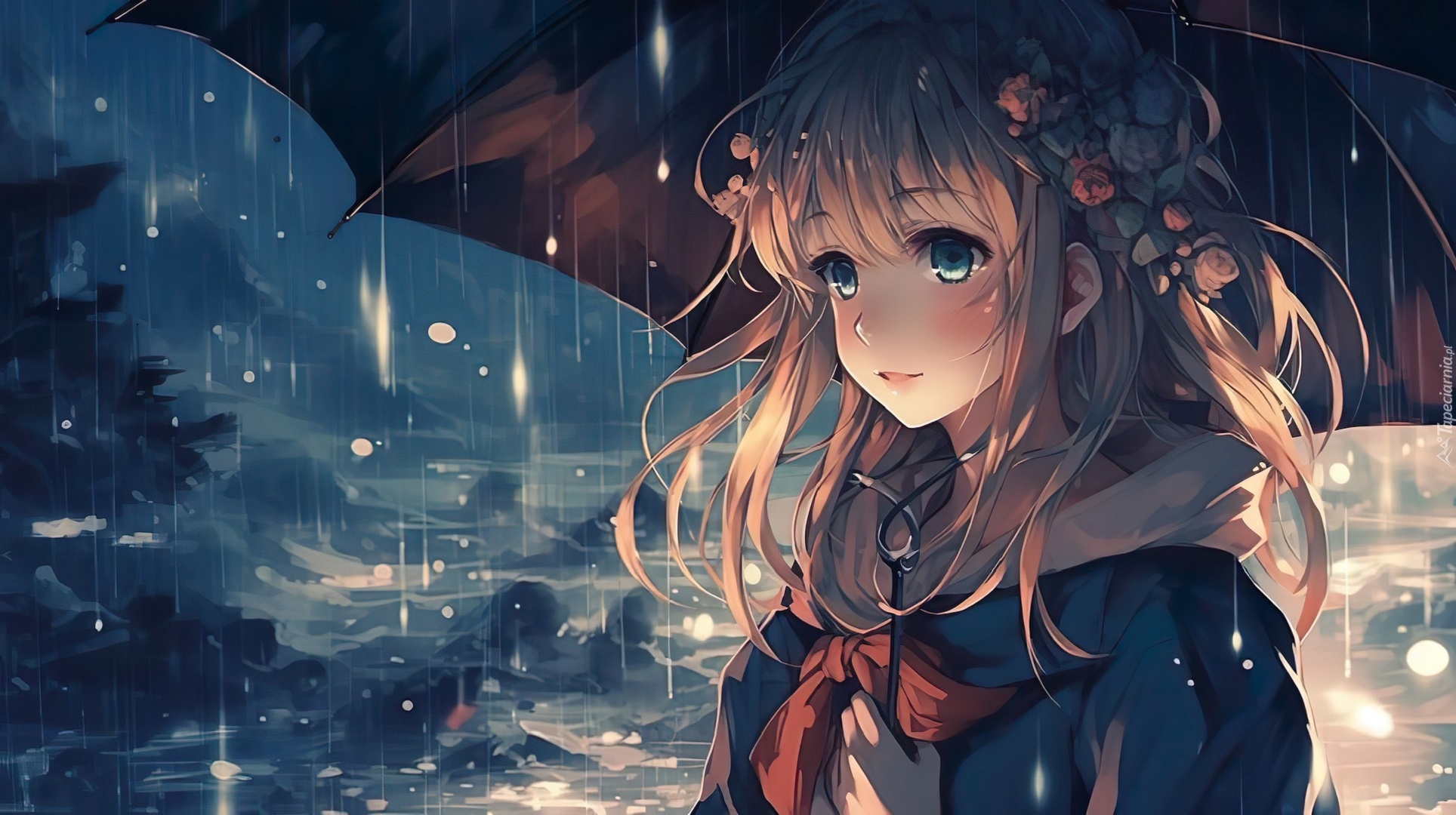 Edytor tapety: Dziewczyna pod parasolem w czasie deszczu