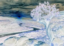 Edytor tapety: Drzewo na tle krętej rzeki