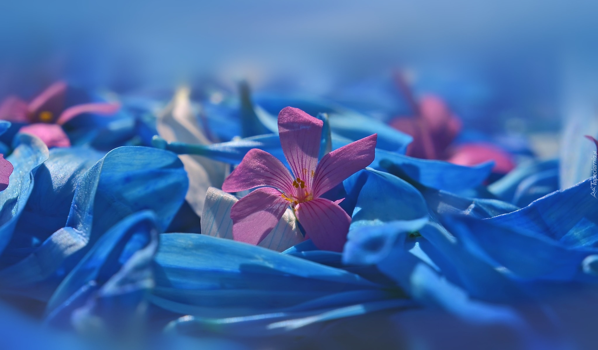 Edytor tapety: Kwiat szczawiu różowego w niebieskich płatkach
