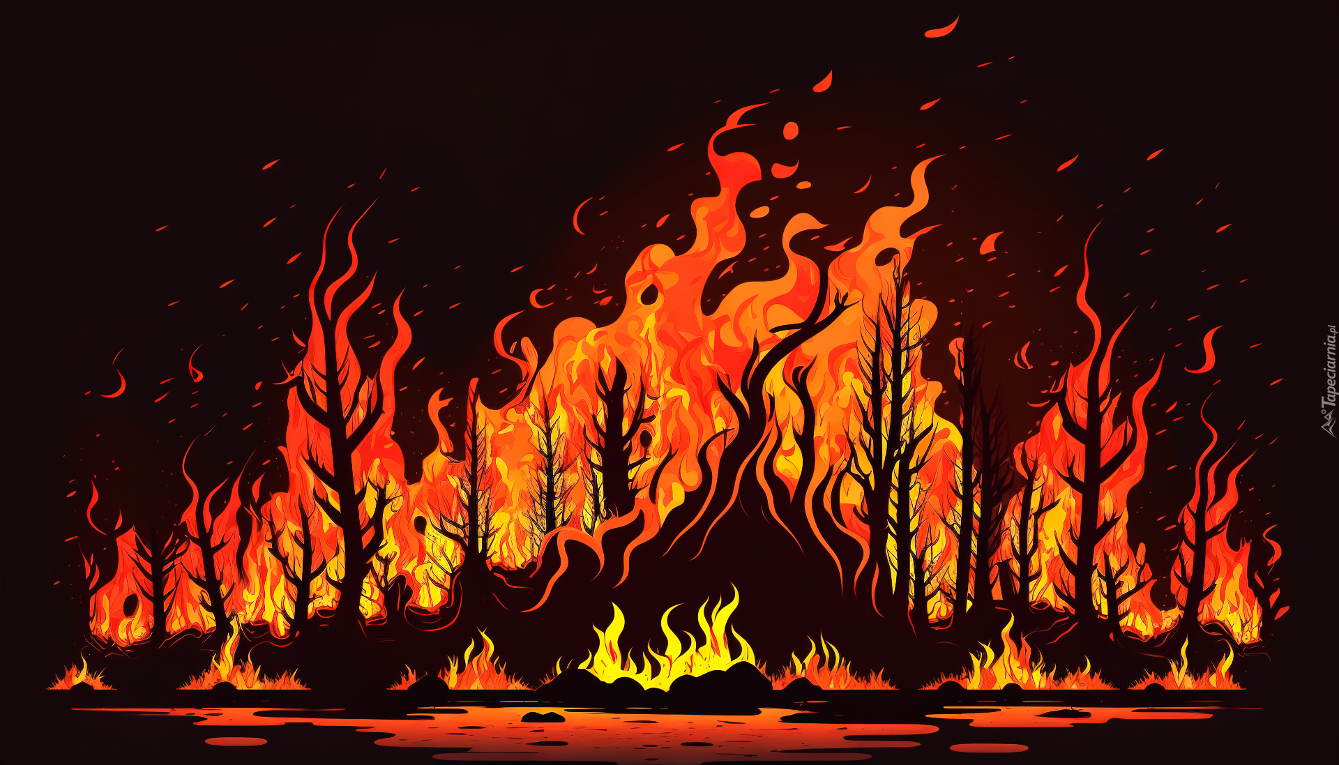 Edytor tapety: Płonący las w 2D