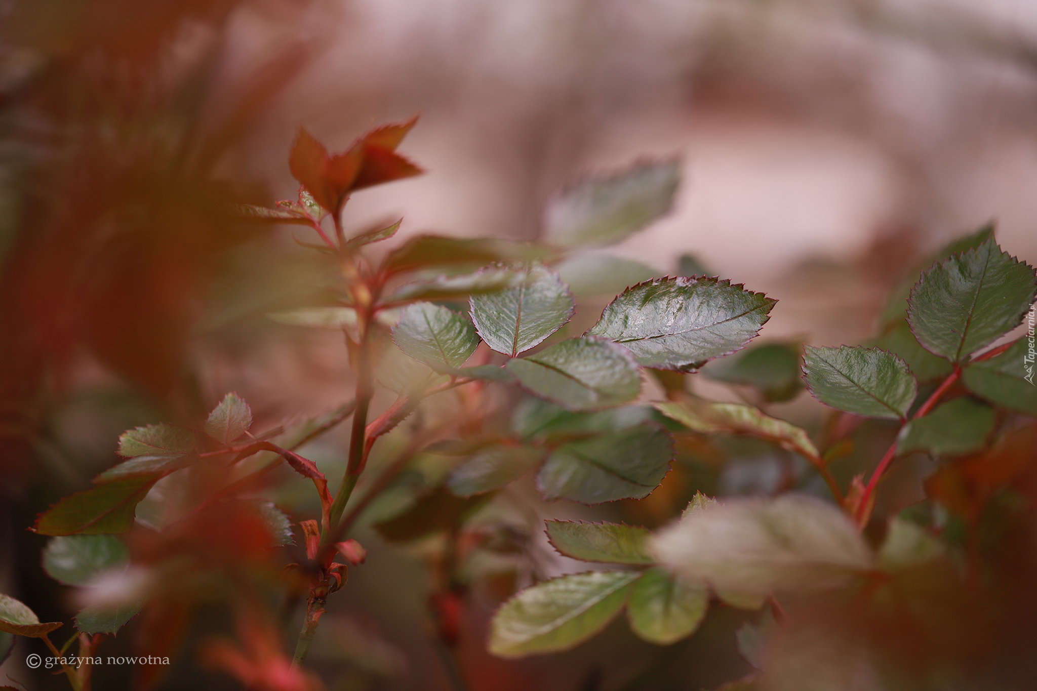 Edytor tapety: Młode liście na krzewie róży