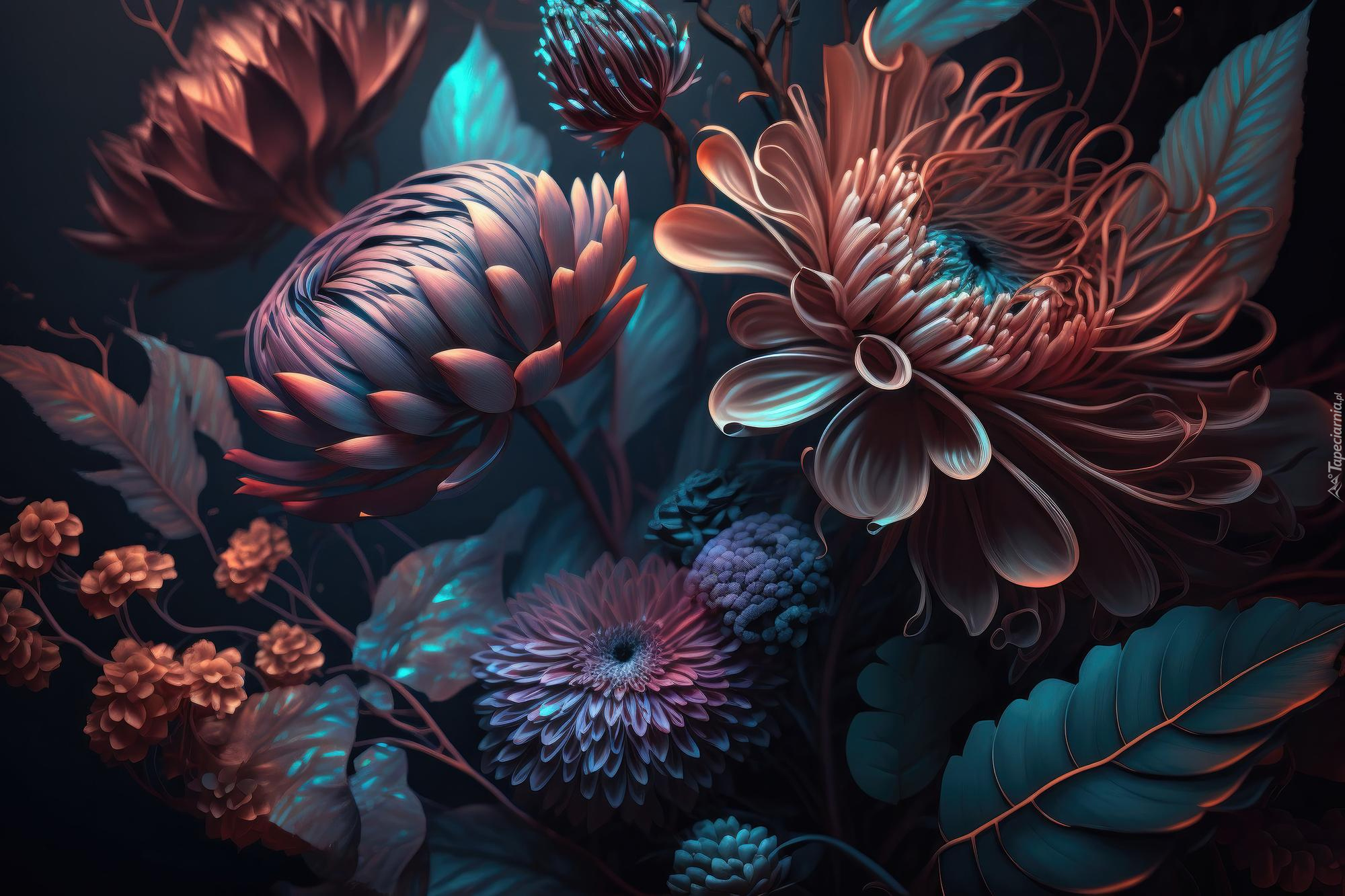 Edytor tapety: Różnorodne kwiaty w bukiecie w grafice 2D