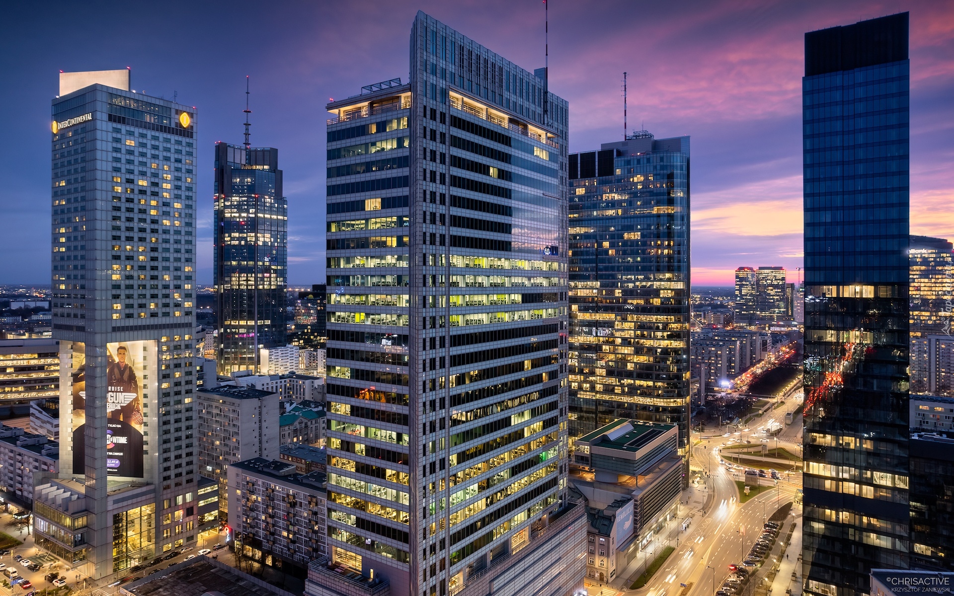 Edytor tapety: Centrum Warszawy o zmroku